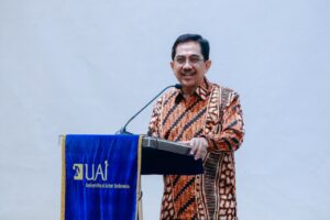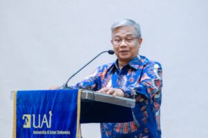 Prof. Dr. Widodo Muktiyo, juga berbagi pengalaman selama menjabat sebagai Wakil Rektor Bidang Perencanaan dan Kerja Sama di Universitas Sebelas Maret (UNS) dan sebagai Direktur Jenderal di Kementerian Komunikasi dan Informatika (Kemenkominfo). “Ilmu saya sekarang adalah komunikasi dan branding. Menurut saya, UAI sudah memiliki nama yang kuat, tinggal kita buat semakin nendang,” ujar beliau.
