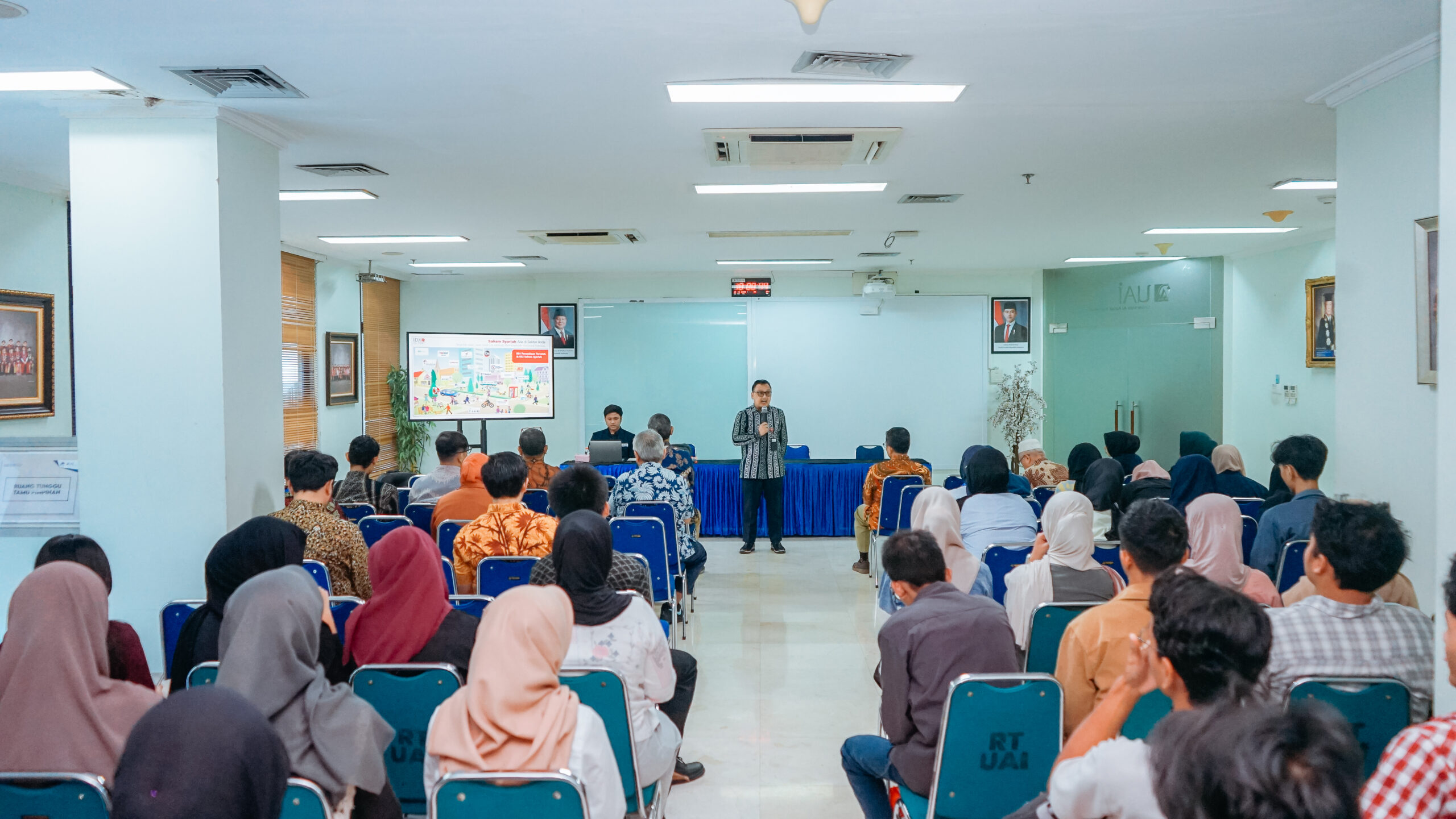 Kegiatan ini berlangsung pada Rabu, 17 September 2025 di Ruang Serbaguna UAI dan dihadiri oleh Dekan FEB UAI, Dr. Kuncoro Hadi, S.T., M.Si., para dosen, serta mahasiswa. Sekolah Pasar Modal Syariah ini dilaksanakan untuk meningkatkan pemahaman dasar hingga lanjutan terkait pasar modal syariah, sehingga peserta tidak hanya memahami konsep teoritis, tetapi juga siap mengaplikasikannya dalam praktik investasi nyata.