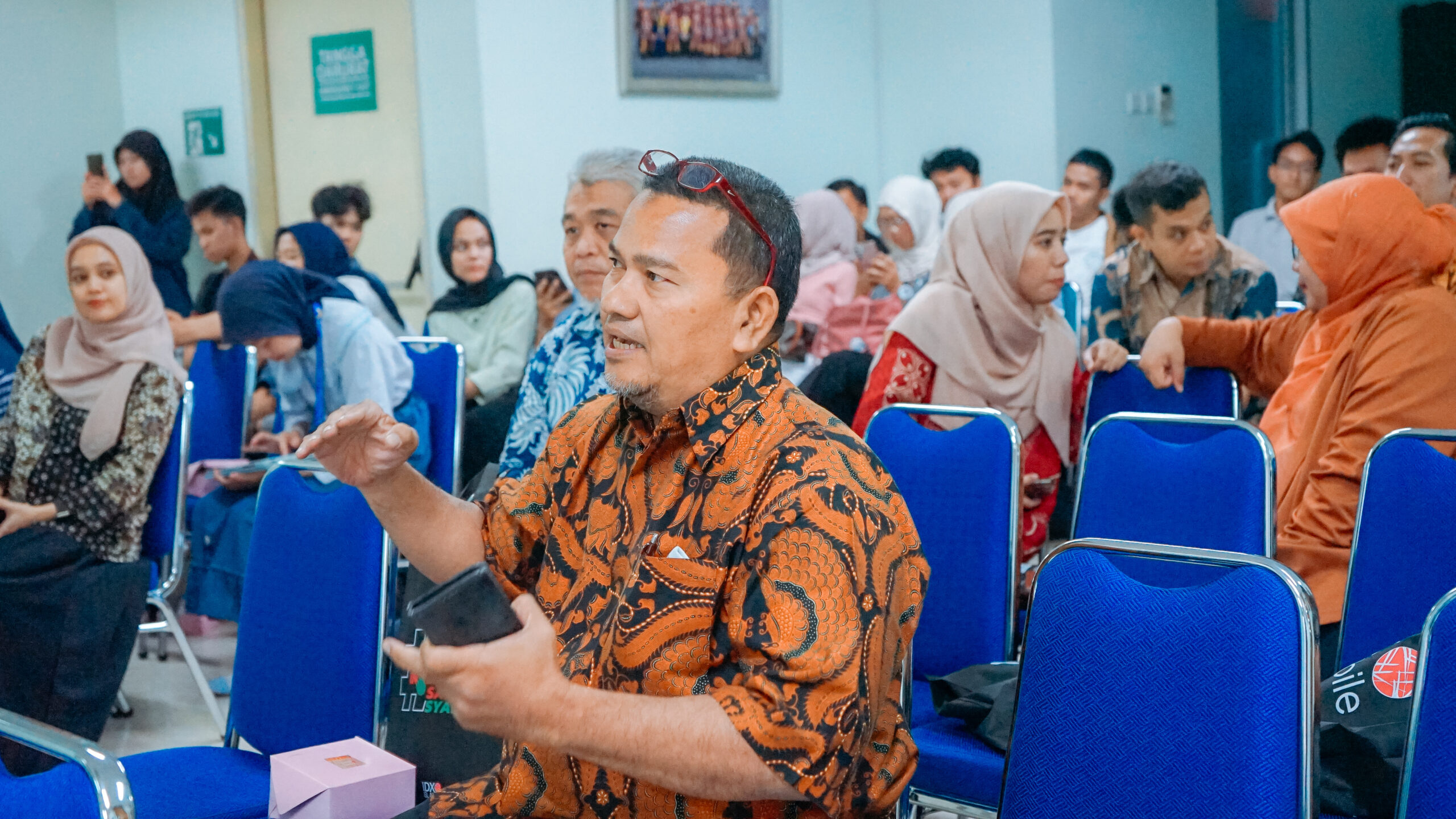 Pada sesi kedua, Zainal Falah dari Phillip Sekuritas Indonesia mengupas praktik investasi di pasar modal syariah. Ia menjelaskan langkah-langkah membuka rekening efek syariah, cara memilih instrumen investasi yang tepat, serta strategi bertransaksi yang sesuai prinsip Islam. Menurutnya, strategi yang baik tidak hanya terkait pemilihan saham, tetapi juga pemahaman analisis investasi agar keputusan lebih terukur.