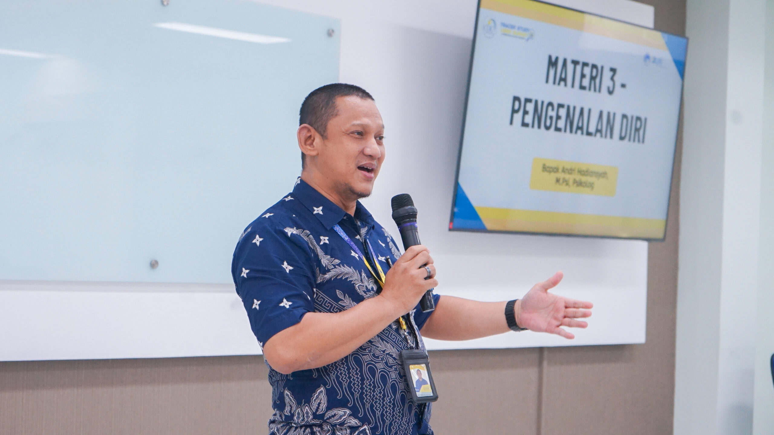 Pelatihan hari pertama dimulai dengan psikotes yang difasilitasi oleh Kepala UPT Kewirausahaan Pemuda, Pengembangan Karir, dan Pemberdayaan Alumni (KPPA), Andri Hadiansyah, S.Psi., M.Psi. Tes awal ini bermanfaat untuk mengenali potensi, kekuatan, serta area pengembangan diri peserta. Tidak hanya itu, beliau juga membawakan materi pengenalan diri pada sesi penutup hari pertama.