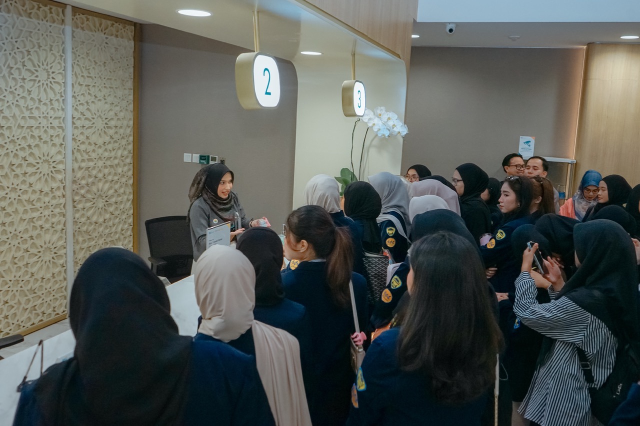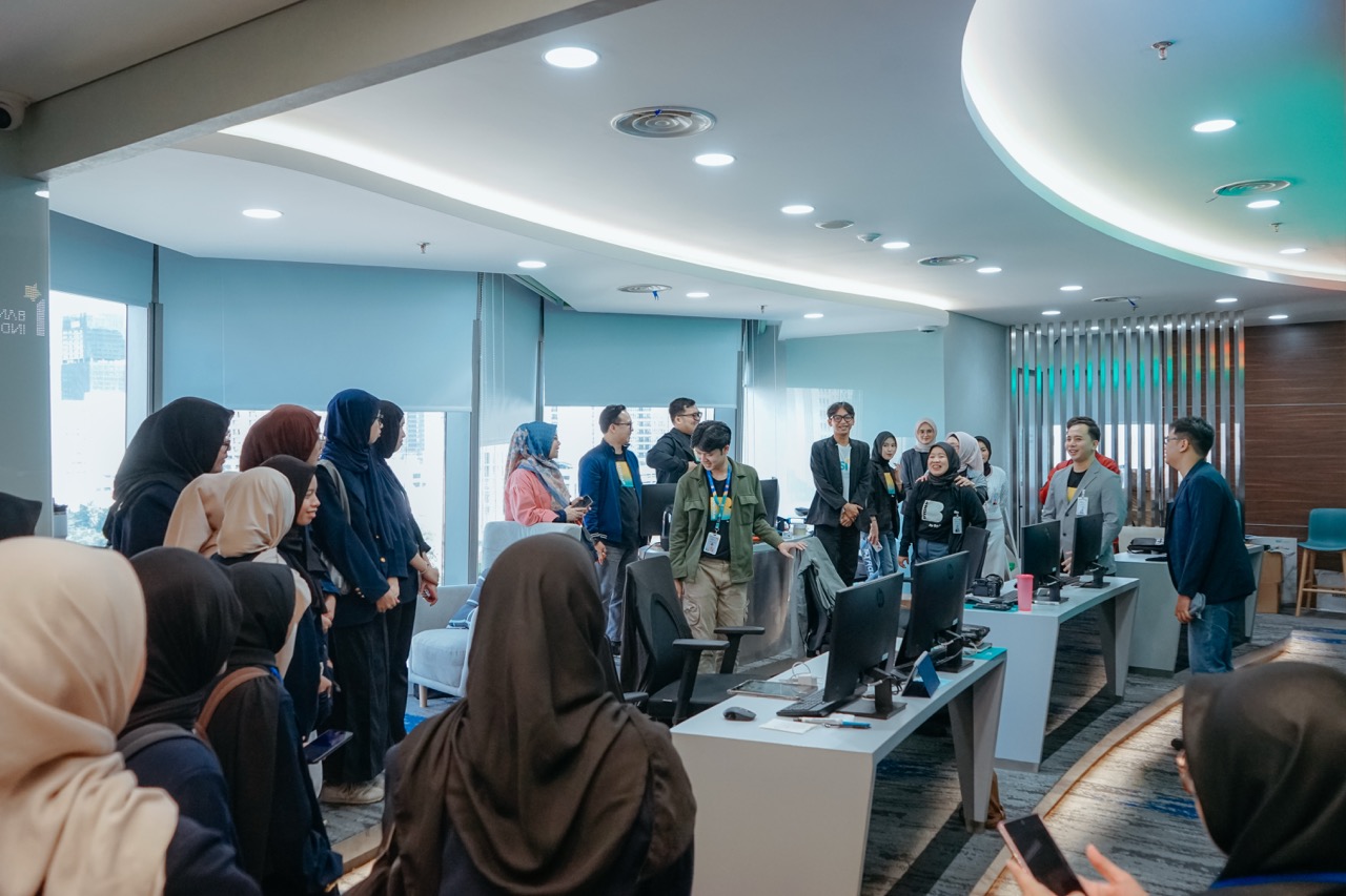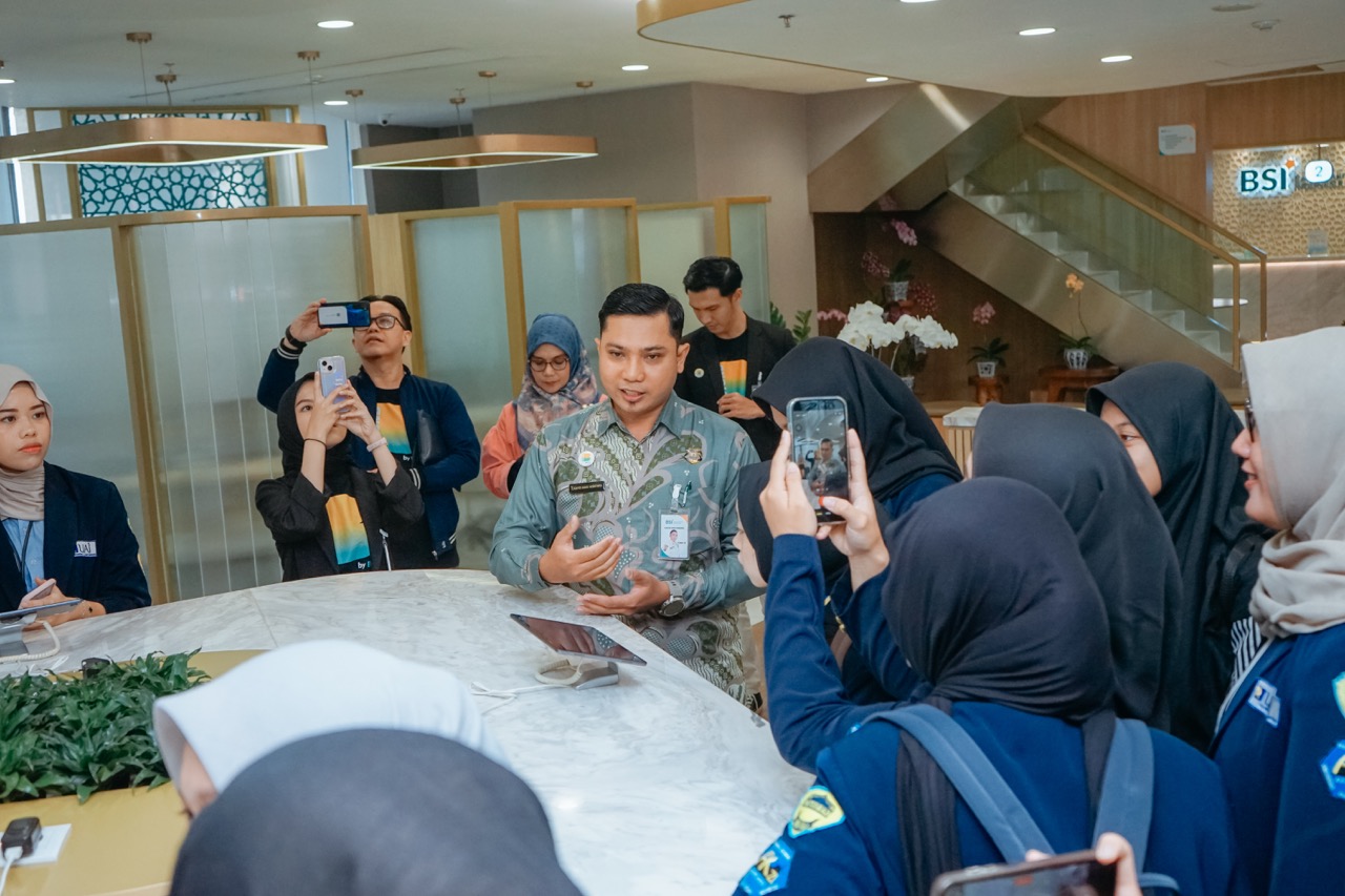 Rangkaian kegiatan diawali dengan tur lingkungan kerja BSI. Dalam sesi ini, mahasiswa memperoleh kesempatan untuk mengenal secara langsung berbagai fungsi layanan perbankan, mulai dari teller, customer service, hingga peran security dalam pelayanan kepada nasabah. Mahasiswa juga diajak mengunjungi sejumlah fasilitas penunjang, antara lain Lounge Room, BSI Situation Room, Control Room BCM (Business Continuity Management), dan ruang pertemuan lantai 3. Tidak hanya itu, BSI juga menyediakan ruang fitness karyawan sebagai bagian dari penerapan work-life balance di lingkungan BSI.