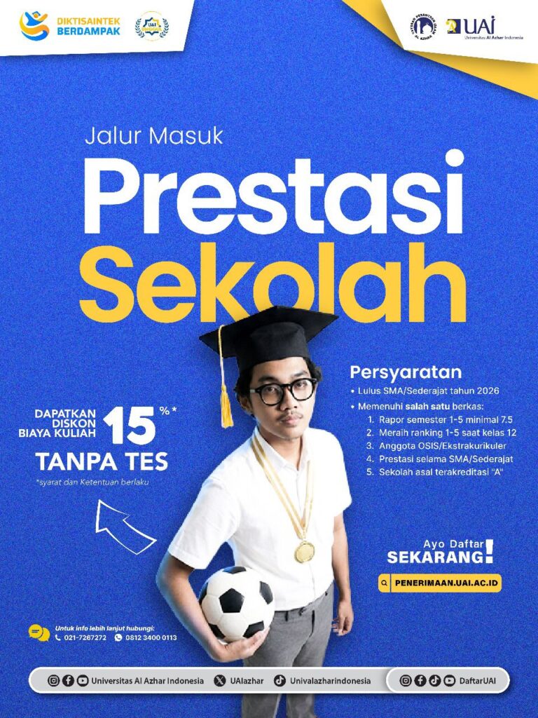 Universitas Al-Azhar Indonesia (UAI) mencoba memenuhi kebutuhan calon mahasiswa pada akses pendidikan berkualitas yang praktis dan efisien. Salah satu pintu masuk yang paling diminati adalah Jalur Rapor (Unggulan). Jalur seleksi ini dibuka untuk mengapresiasi kerja keras siswa tanpa harus terbebani oleh ujian tertulis tambahan. Dengan memanfaatkan nilai rapor dari semester satu hingga semester lima, calon mahasiswa dapat mengukur peluang mereka untuk masuk ke program studi impian di UAI. Hal ini memberikan ketenangan pikiran karena proses evaluasi dilakukan berdasarkan rekam jejak akademik yang sudah terbangun selama bertahun-tahun.