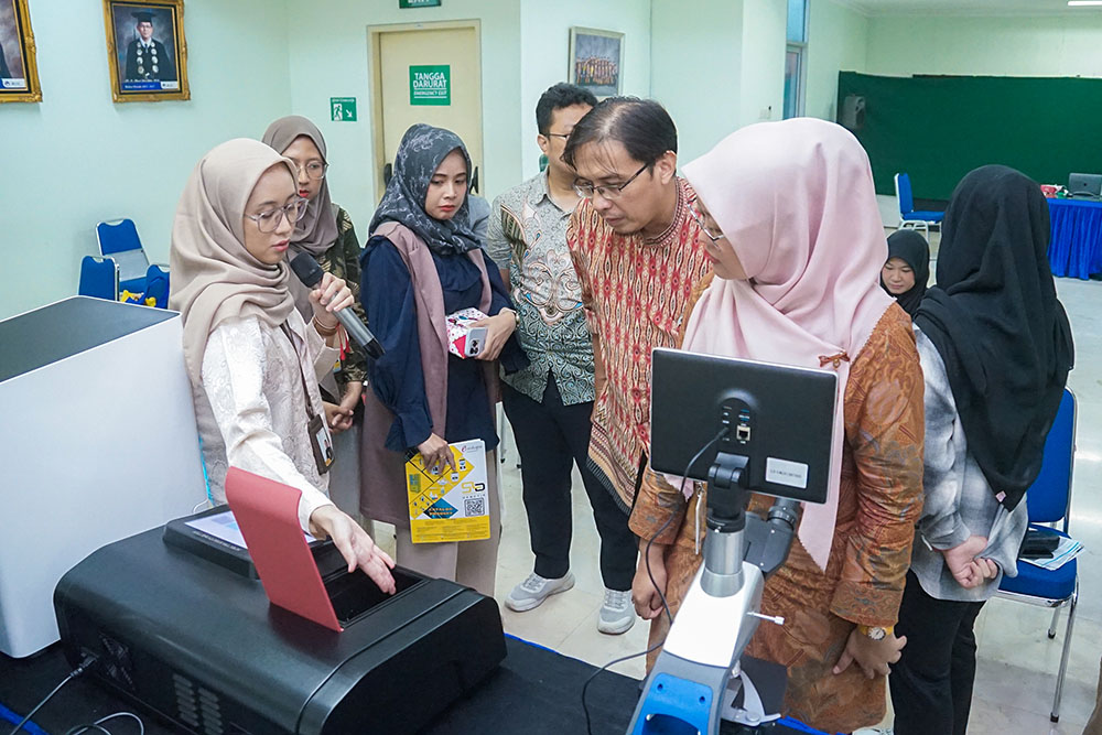 Peserta tampak antusias mencoba langsung alat yang dipamerkan. Suasana demonstrasi berlangsung interaktif. Banyak dosen yang berdiskusi langsung dengan tim teknis untuk memahami lebih dalam fungsi dan spesifikasi alat.