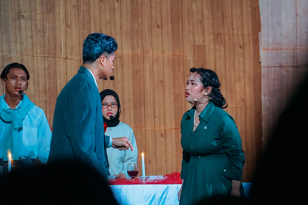 Penampilan teater ini dibintangi oleh mahasiswa Program Studi Bahasa dan Kebudayaan Inggris UAI yang penuh talenta. Dwika Zidane memerankan Emmet Cleveland, Rhisto Oemar sebagai Richard Emery, Esa Rita sebagai Angela Emery, dan Laura Shanti sebagai Avalynn Emery. Sarah Fadilah membawakan peran Mary Anne Esther, diikuti Mico Alrasyid sebagai Stephen Asher serta Rsuyda Radithya sebagai Scott Johnson. Sementara itu, Ditha Prameswari menyuarakan sosok misterius yang menjadi elemen penting dalam cerita, menambah kedalaman dan nuansa dramatis sepanjang pertunjukan. Seluruh pemeran tampil mengesankan dan berhasil menghidupkan karakter masing-masing dengan ekspresi dan penjiwaan yang kuat.