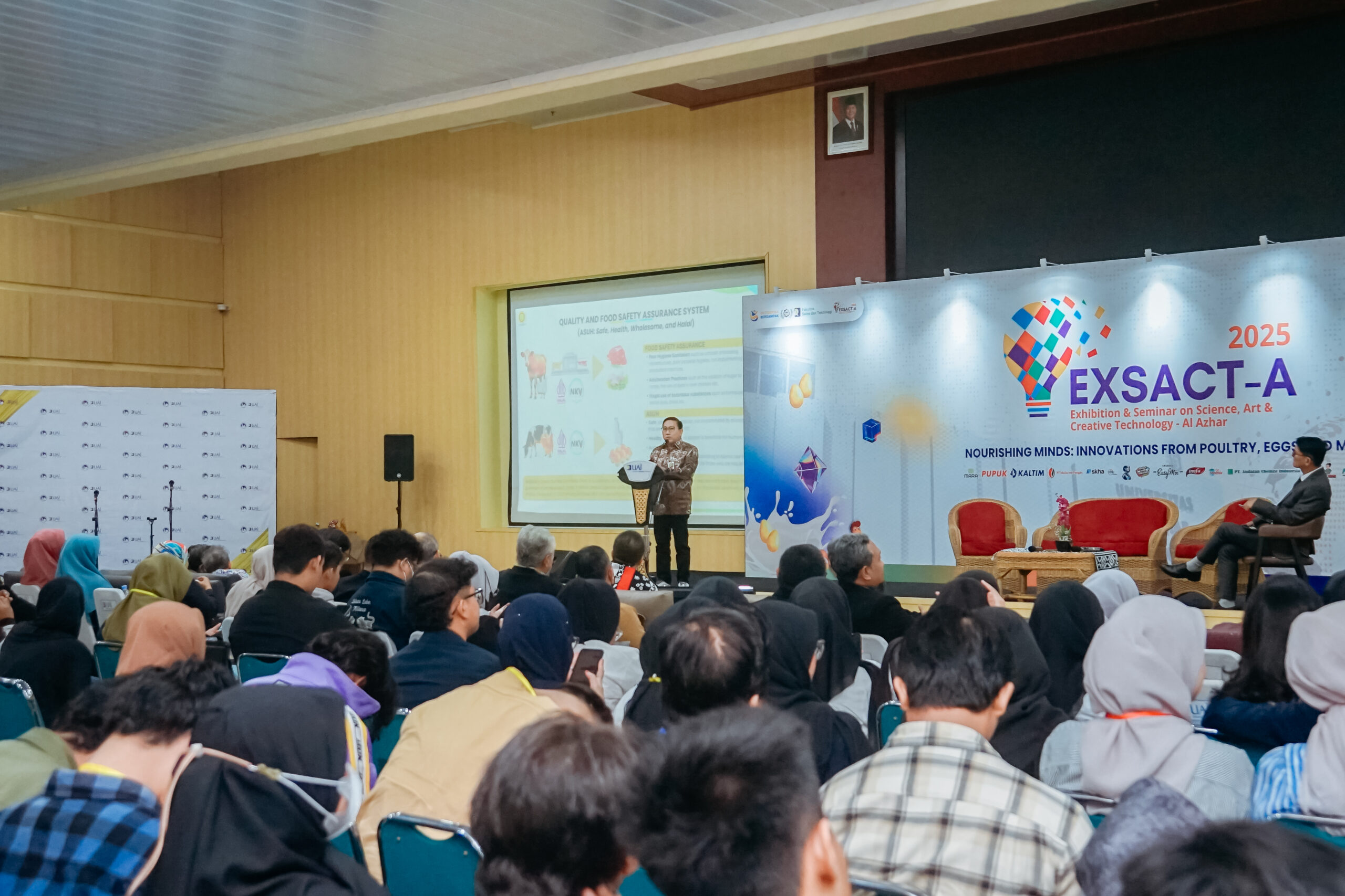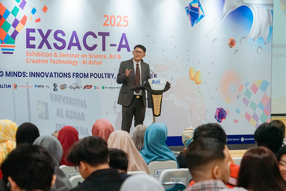 Inovasi tanpa aksi hanya akan menjadi wacana. Namun di Universitas Al-Azhar Indonesia, inovasi diwujudkan dalam aksi nyata. Hal ini tercermin dalam EXSACT-A (Exhibition & Seminar on Science, Art & Creative Technology – Al Azhar) 2025, seminar dan festival tahunan yang diselenggarakan oleh Fakultas Sains dan Teknologi (FST) UAI. Ajang ini mempertemukan sains, seni, dan kreativitas mahasiswa dalam satu perayaan kolaboratif. Digelar pada Sabtu, 19 Juli 2025, EXSACTA 2025 kali ini bersinergi dengan Festival Ayam Telur Susu (FATS) yang mengangkat isu strategis tentang gizi dan konsumsi protein hewani.