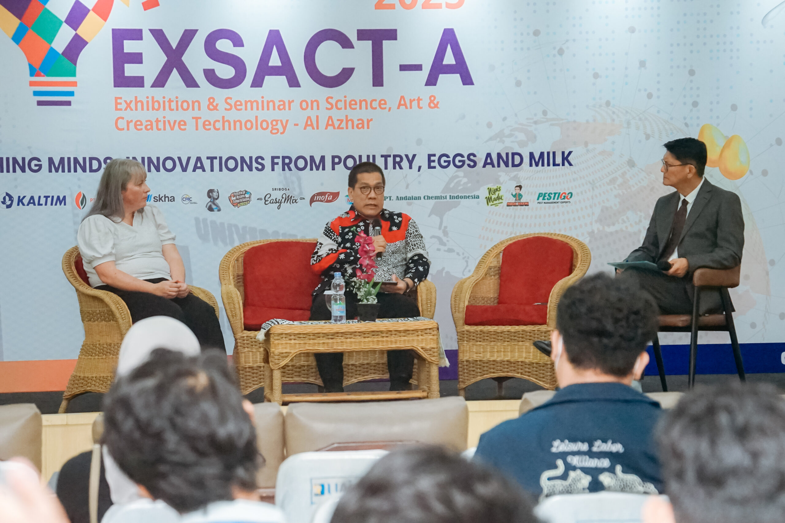 Tahun ini, Seminar Internasional EXSACT-A mengusung tema “Nourishing Minds: Innovation From Poultry, Eggs, and Milk” dan menghadirkan berbagai narasumber dari dalam dan luar negeri. Para pembicara berasal dari latar belakang akademisi, industri, hingga praktisi riset, mencakup bidang sains, teknologi, lingkungan, dan pendidikan. Beberapa narasumber utama (Keynote Speaker) yang hadir antara lain: