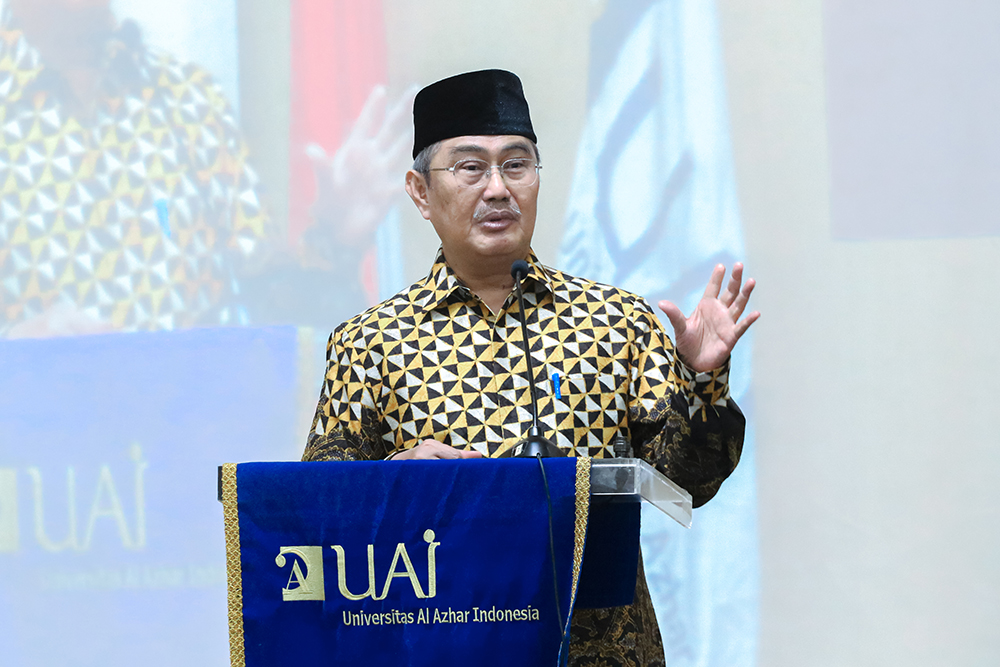 Kegiatan dibuka dengan sambutan dari Dekan Fakultas Hukum Universitas Al-Azhar Indonesia (FH UAI), Dr. Yusup Hidayat, S.Ag., seputar kegiatan sosialisasi 4 pilar MPR RI. Beliau menyampaikan bahwa sosialisasi ini merupakan sebuah amanat dari Undang-Undang nomor 17 tahun 2014 terkait dengan sosialisasi 4 pilar. Pelaksanaan sosialisasi perlu dijalankan karena empat pilar MPR merupakan suatu pondasi yang sangat penting bagi kehidupan bernegara. Beliau bercerita tentang sejarah perjuangan para pendiri bangsa, seperti Soekarno, Hatta, dan Soepomo, dalam menyusun gagasan-gagasan penting tentang negara. Bahkan Buya Hamka dengan bukunya yang berjudul “Urat Tunggang Pancasila”-nya turut menjelaskan hubungan antara Islam dan Pancasila. “Nah, mudah-mudahan generasi millennial dan generasi Z bisa memahami bagaimana cara berpikir the founding fathers dulu sehingga bangsa kita adalah bangsa yang tetap bersatu dan maju sehingga kita bisa hidup dengan sejahtera di bumi kita ini” tutup Dekan FH UAI. Prof. Dr. Ir. Asep Saefuddin, M.Sc, selaku Rektor Universitas Al-Azhar Indonesia turut memberikan sambutan bahwa generasi muda UAI harus paham pilar-pilar 4 MPR RI. “Jadi tentang bagaimana NKRI, Undang-Undang Dasar 1945, kemudian Pancasila dan BhinnekaTunggal Ika itu memang harus kita pegang secara utuh, sehingga menjadi inspirasi dan motivasi kita untuk selalu maju,” pesan beliau kepada mahasiswa. Beliau meyakinkan kepada mahasiswa bahwa acara ini sangat bernilai karena menghadirkan narasumber yang “core of the core” alias sangat berpengalaman di MPR, yaitu Prof. Dr. H. Jimly Asshiddiqie, S.H., M.H.