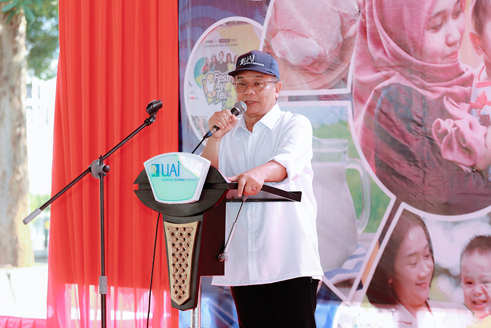 Festival Ayam Telur Susu (FATS) 2025 resmi dibuka dengan sambutan dari Rektor Universitas Al-Azhar Indonesia (UAI), Prof. Dr. Ir. Asep Saefuddin, M.Sc. Beliau menegaskan bahwa festival ini merupakan bentuk dukungan UAI sebagai perguruan tinggi terhadap program prioritas pemerintah, yaitu Makan Bergizi Gratis (MBG). “Kegiatan ini sejalan dengan komitmen kami dalam meningkatkan literasi gizi di masyarakat dan memperkuat peran pendidikan tinggi dalam membangun generasi sehat dan cerdas,” pesan Rektor. Menurut beliau, kolaborasi antara perguruan tinggi, pemerintah, dan dunia usaha menjadi kunci dalam memperkuat kesadaran gizi masyarakat, khususnya konsumsi protein hewani berkualitas.