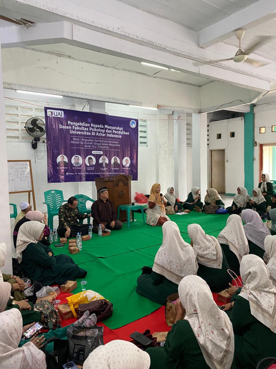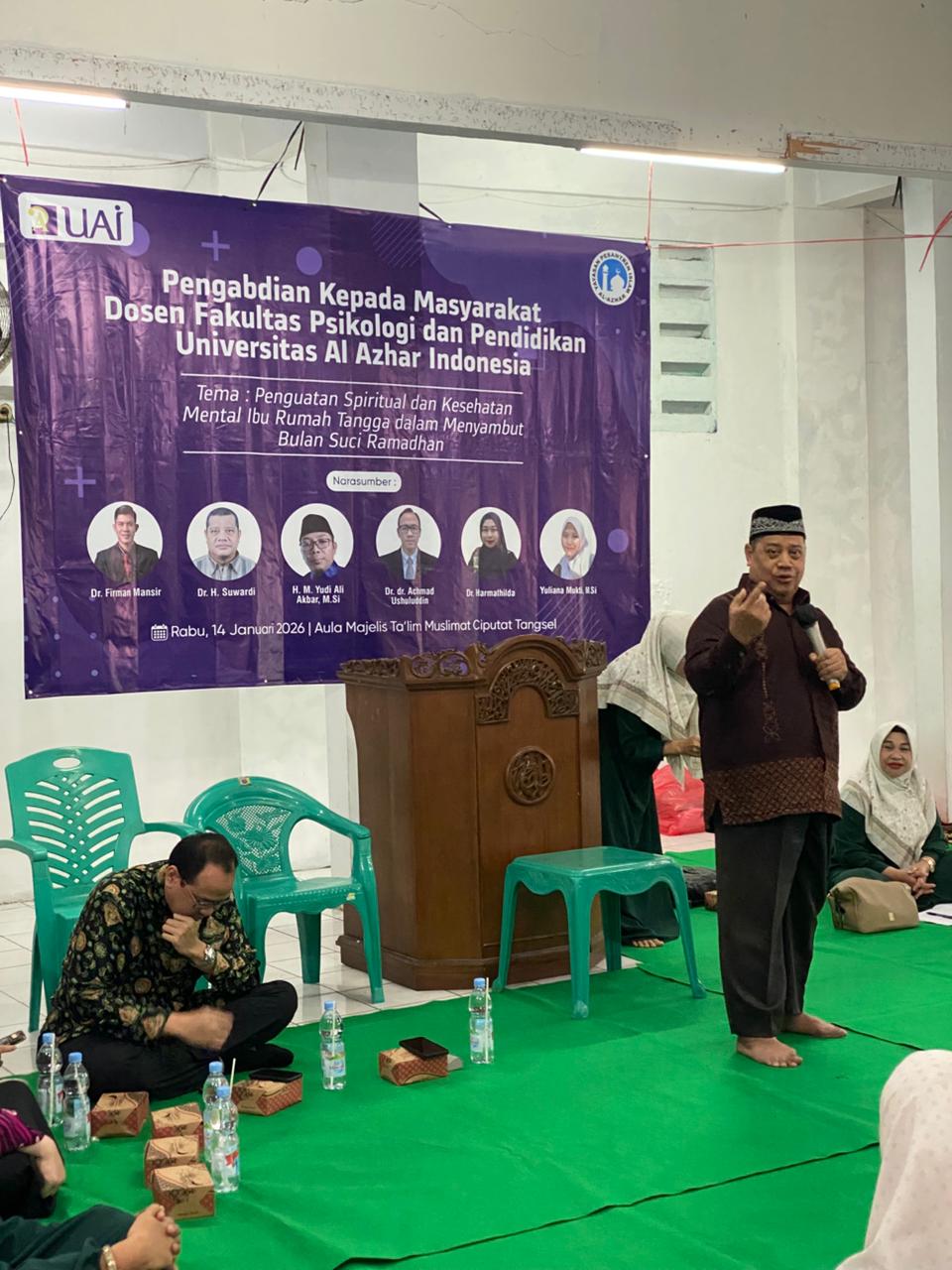 Menjelang bulan suci Ramadhan, ibu rumah tangga kerap menghadapi peningkatan beban peran, mulai dari kesiapan ibadah, pengelolaan emosi, hingga pengaturan kebutuhan keluarga. Untuk mendukung kesiapan tersebut, dosen Fakultas Psikologi dan Pendidikan Universitas Al-Azhar Indonesia (FPP UAI) melaksanakan kegiatan Pengabdian kepada Masyarakat dengan tema penguatan spiritual dan kesehatan mental ibu rumah tangga dalam menyambut bulan suci Ramadhan.