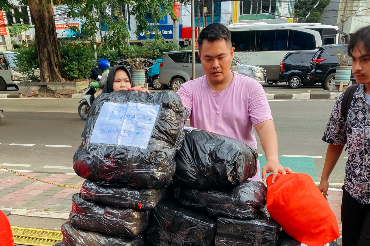 Titik pengumpulan donasi barang dipusatkan di Tenda Biru Universitas Al-Azhar Indonesia. Penyaluran bantuan dilakukan secara transparan dan bertanggung jawab bekerja sama dengan organisasi sosial dan kemanusiaan.
