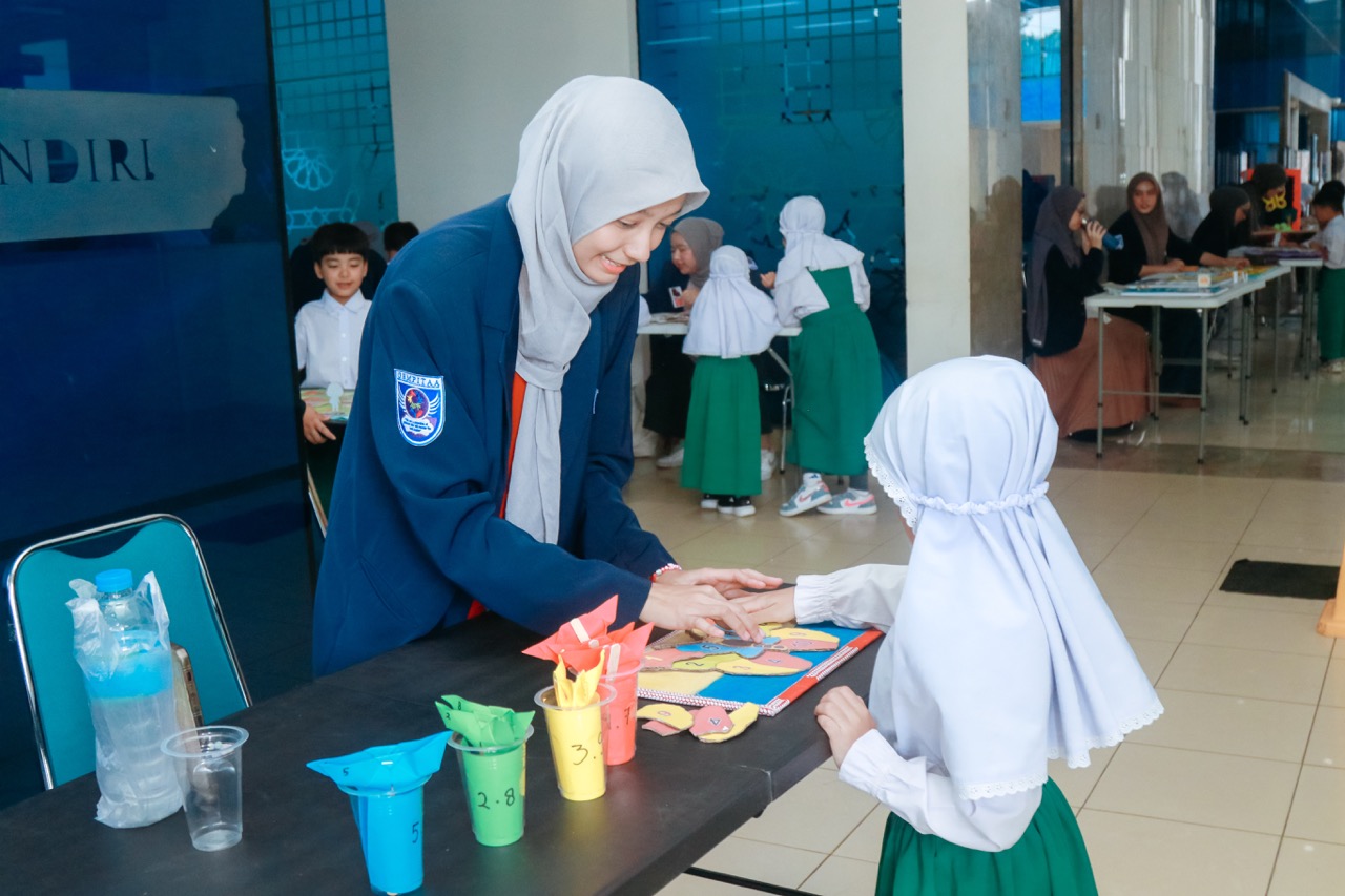 Mahasiswa PG PAUD UAI menghadirkan beragam media pembelajaran kognitif yang dirancang untuk melatih kemampuan mengenal simbol, berpikir logis sederhana, serta pemecahan masalah anak usia dini. Media pembelajaran dipamerkan di Lobi UAI dalam bentuk permainan edukatif yang interaktif dan kontekstual.