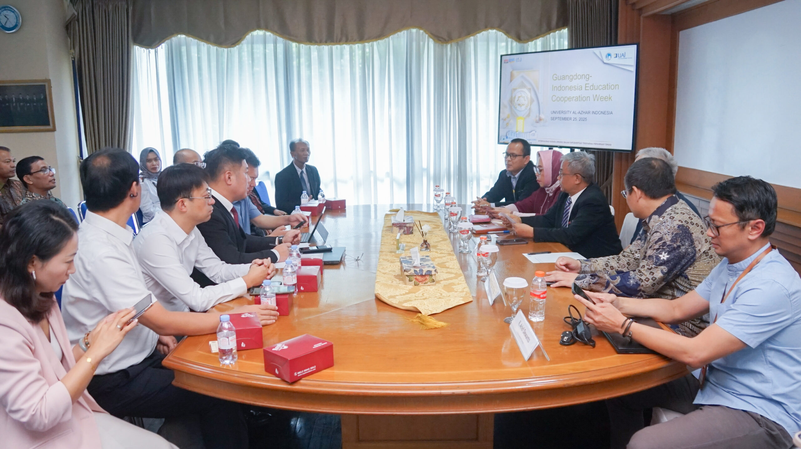 Universitas Al-Azhar Indonesia (UAI) kembali menunjukkan perannya sebagai kampus dengan jaringan internasional yang kuat. UAI berkesempatan untuk menjadi tuan rumah penyelenggaraan Guangdong-Indonesia Education Cooperation Week yang diselenggarakan di Ruang Rektor pada Kamis, 25 September 2025.