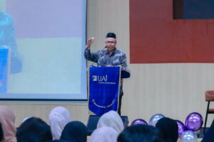 Seminar nasional menghadirkan dua pemateri hebat, yaitu Dr. Dudy Imanuddin Effendi, M.Ag (Sekjend Perkumpulan Ahli Bimbingan dan Konseling Islam (PABKI)) dan Dr. Dr(c). Siti Nuri Nurhaidah, S.Pd., S.Sos.I., M.A (Universitas Islam As Syafi’iiyah Jakarta) , serta dipandu oleh Dosen Prodi BKI UAI, Dr. Harmathilda, M.A. sebagai moderator. Pemateri pertama, Dr. Dudy, menyoroti problematika kejiwaan modern yang muncul akibat jauhnya manusia dari nilai agama dan menjelaskan konsep Qolbun Salim (hati yang sehat) serta Qolbun Al-Maridh (hati yang sakit) . Sementara itu, Dr. Siti Nuri memaparkan teknik public speaking yang efektif melalui penguasaan intonasi, gestur, dan penampilan, sehingga mahasiswa dapat tampil percaya diri dan komunikatif di berbagai situasi.