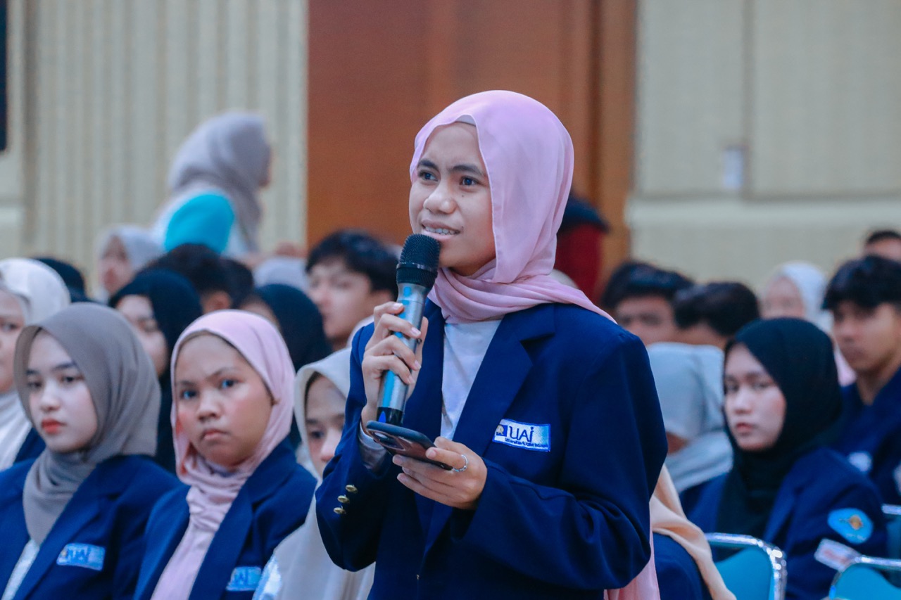 Sesi talkshow menghadirkan Khalid Muhammad, S.Psi., atau Khalid Muh, seorang influencer dan lulusan sarjana psikologi Universitas Negeri Jakarta, yang dipandu oleh Kania Zahra, mahasiswa Prodi BKI UAI. Melalui tema “Light of Change: Walking the Path of Islamic Self-Improvement”, Khalid mengajak peserta menapaki perjalanan perbaikan diri dan mengutip pesan Imam Al-Ghazali bahwa “siapa yang mengenal dirinya, maka ia mengenal Tuhannya.”