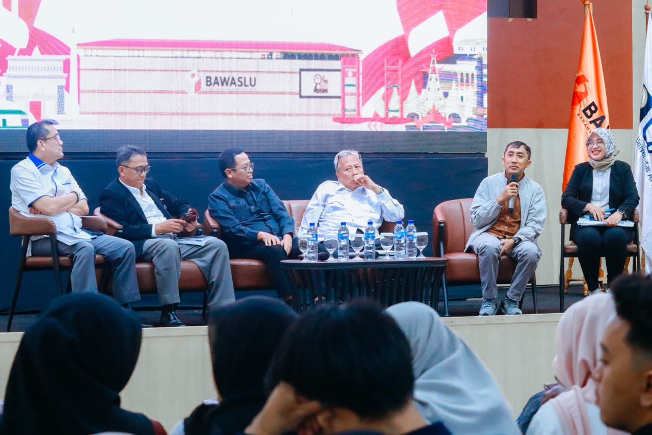 Ketua Bawaslu Provinsi DKI Jakarta, Munandar Nugraha S.Ip., M.A.P., menyampaikan sambutannya dengan mengumumkan bahwa Bawaslu saat ini membuka kesempatan magang bagi mahasiswa yang ingin mempelajari proses kepemiluan secara langsung. Beliau juga berterima kasih kepada mahasiswa yang telah berpartisipasi dalam pemilu sebelumnya dan berharap semakin banyak generasi muda terlibat dalam memperkuat kualitas demokrasi Indonesia.