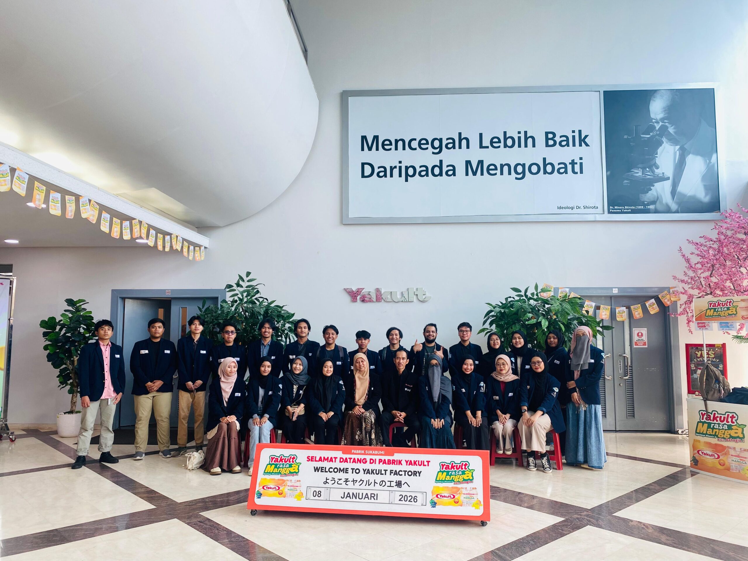 Mahasiswa Program Studi Biologi Universitas Al-Azhar Indonesia (UAI) melaksanakan kunjungan industri ke Pabrik Yakult Indonesia Persada, Sukabumi pada Kamis, 8 Januari 2026. Kegiatan ini merupakan bagian dari pendalaman materi mata kuliah Bioteknologi Mikroba dan Mikrobiologi Dasar, yang bertujuan menguatkan pemahaman mahasiswa melalui pembelajaran langsung di lingkungan industri berbasis mikroorganisme. Kegiatan tersebut didampingi oleh dosen pengampu, Kun Mardiwati Rahayu, S.Si., M.Biomed.