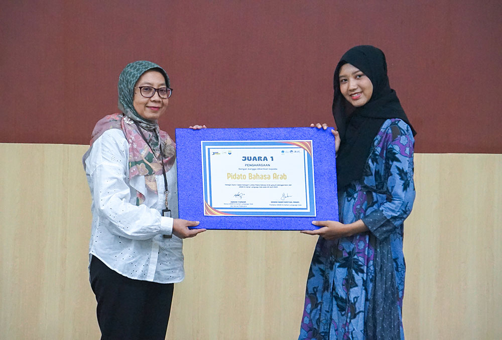 Juara Lomba Pidato Bahasa Arab: Muhammad Wildan Rifqi Al-Bani dari Prodi Bahasa dan Kebudayaan Arab.