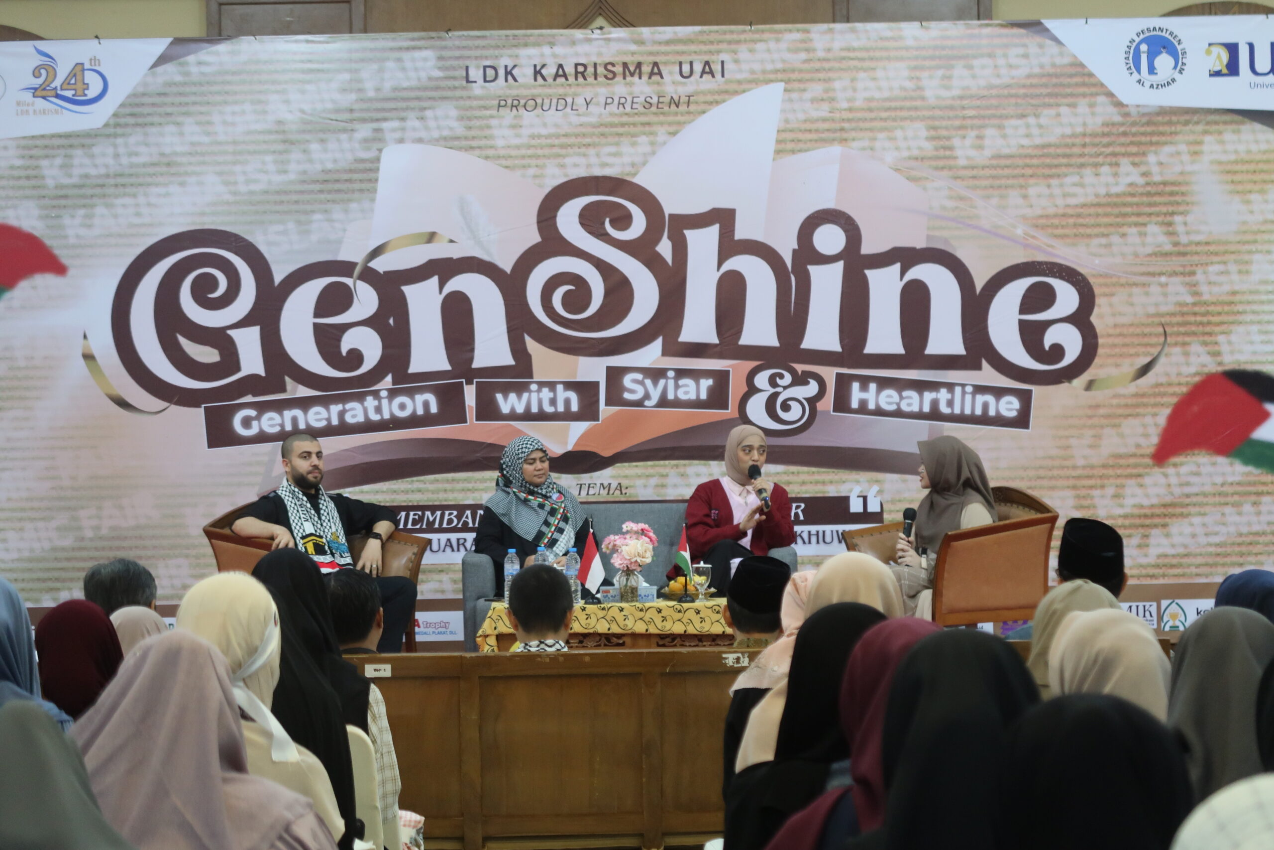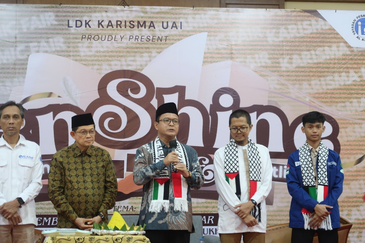 Sebanyak 238 anak muda dari berbagai daerah di Indonesia antusias mengikuti Gen Shine, puncak acara KARISMA Islamic Fair (KIF) 2025 yang digelar di Aula Buya Hamka, Universitas Al-Azhar Indonesia, Ahad (28/9/2025). Kegiatan ini turut dihadiri sejumlah tokoh penting, di antaranya Dr. Ir. Ahmad Husin Lubis, M.Sc. selaku Ketua Pengawas Yayasan Pendidikan Al-Azhar Indonesia, Sigit Tripuruca dari Lembaga Amil Zakat Al-Azhar, Dr. Faisal Hendra, Lc. M.A. selaku Wakil Rektor III Bidang kemahasiswaan dan Alumni Universitas Al-Azhar Indonesia, serta Denny Hermawan, S.T., M.Kom. sebagai pembina LDK KARISMA UAI. Kehadiran tokoh penting bukan sekadar seremonial, melainkan juga menyampaikan pesan inspiratif yang meneguhkan semangat dakwah dan kepedulian sosial, khususnya dalam memperkuat solidaritas generasi muda Indonesia terhadap perjuangan rakyat Palestina.