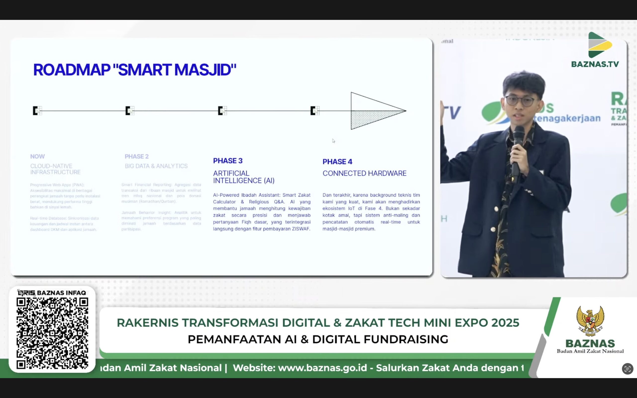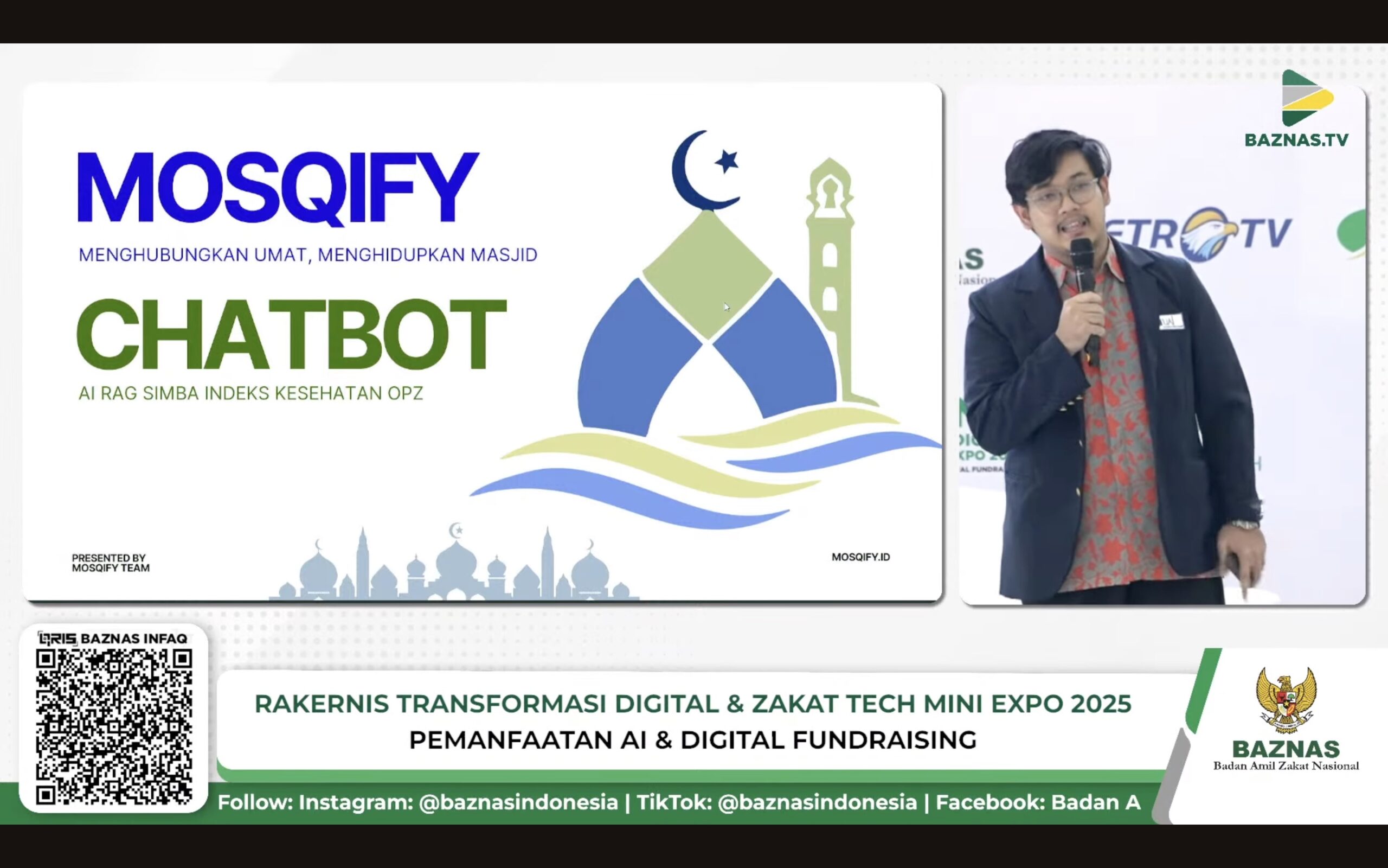 Selanjutnya, Fajar memperkenalkan Mosqify, aplikasi yang dibuat untuk meningkatkan transparansi dan keterhubungan antara jamaah dan masjid. Aplikasi ini juga membantu mencegah donasi yang sering terlewat. Mosqify menyediakan tampilan cash flow real time, informasi kegiatan yang mudah diakses, donasi digital, dan fitur pemberdayaan bagi warga sekitar. Aplikasi ini juga menyederhanakan administrasi DKM melalui pencatatan inventaris dan laporan otomatis. Ke depan, Mosqify dikembangkan menuju konsep smart masjid dengan integrasi AI dan perangkat Internet of Things (IoT) seperti kotak amal digital.