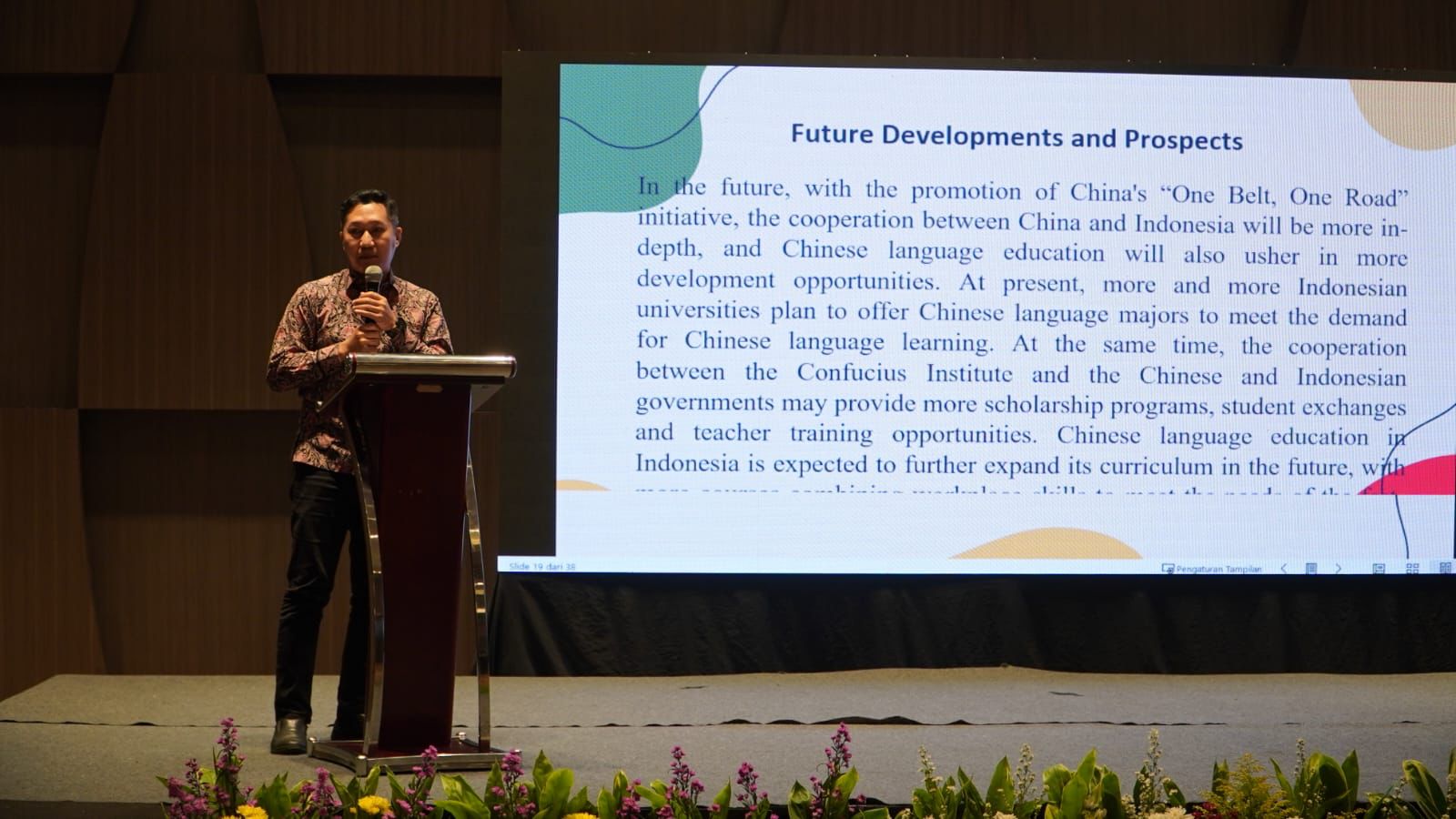 Dalam paparannya, Direktur PBM UAI yang juga merupakan Ketua Program Studi Bahasa Mandarin dan Kebudayaan Tiongkok (BMKT) UAI Feri Ansori, M.Ed., membawakan materi berjudul “The Development of Localized Chinese Language Education in Indonesia”. Setelah pemaparan selesai dilanjutkan sesi tanya jawab atau sesi diskusi. Dalam bagian ini terdapat beberapa penanggap atau penanya mengenai isi materi.