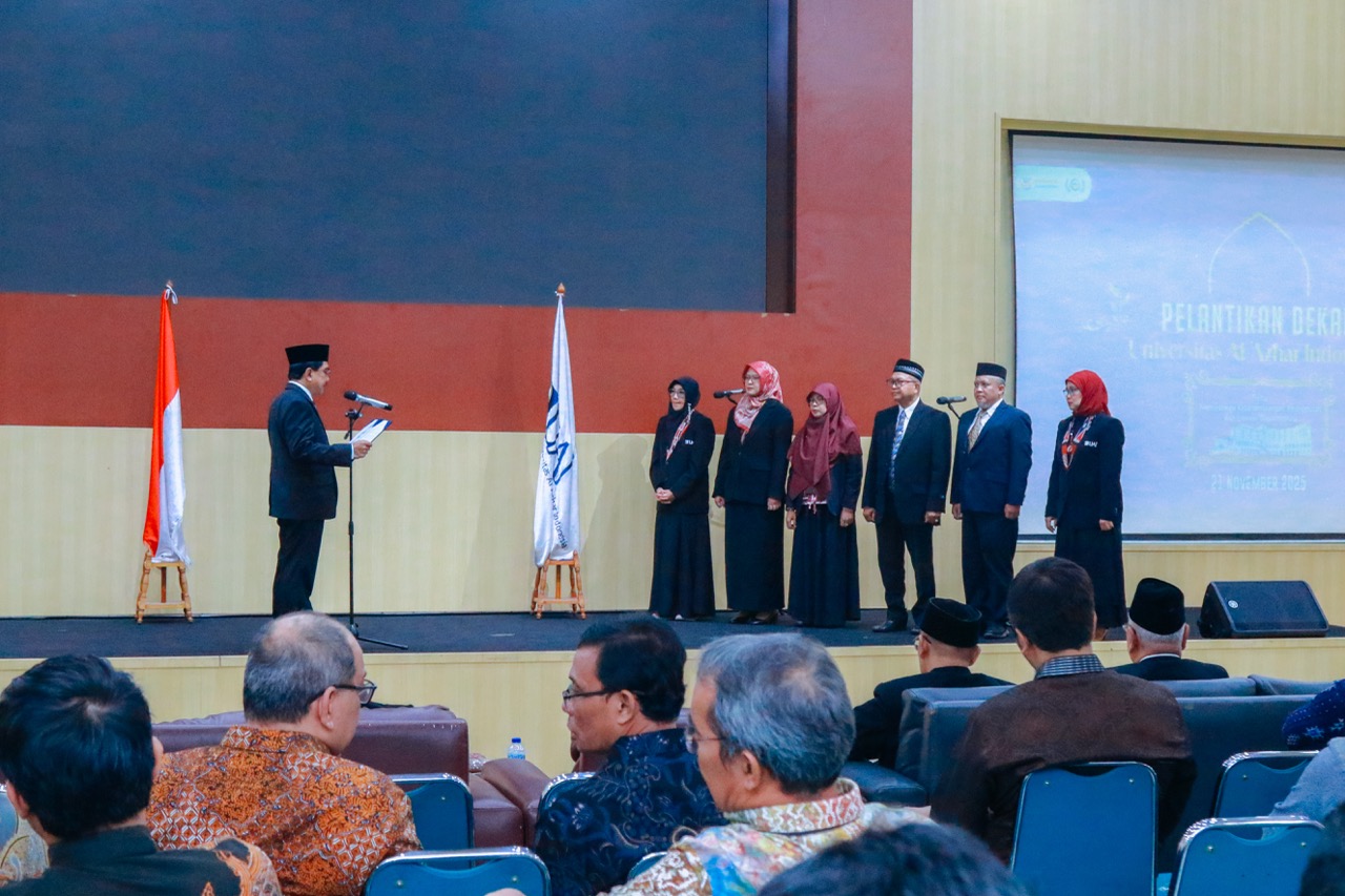 Acara pelantikan diawali dengan pembacaan Surat Keputusan penetapan Dekan UAI periode 2025–2029 oleh Direktur Sumber Daya Manusia, Dinar Koesoemoadji, S.Si., M.Si. Prosesi pelantikan dan penandatanganan surat jabatan dipimpin langsung oleh Rektor UAI, Prof. Dr. Widodo Muktiyo.