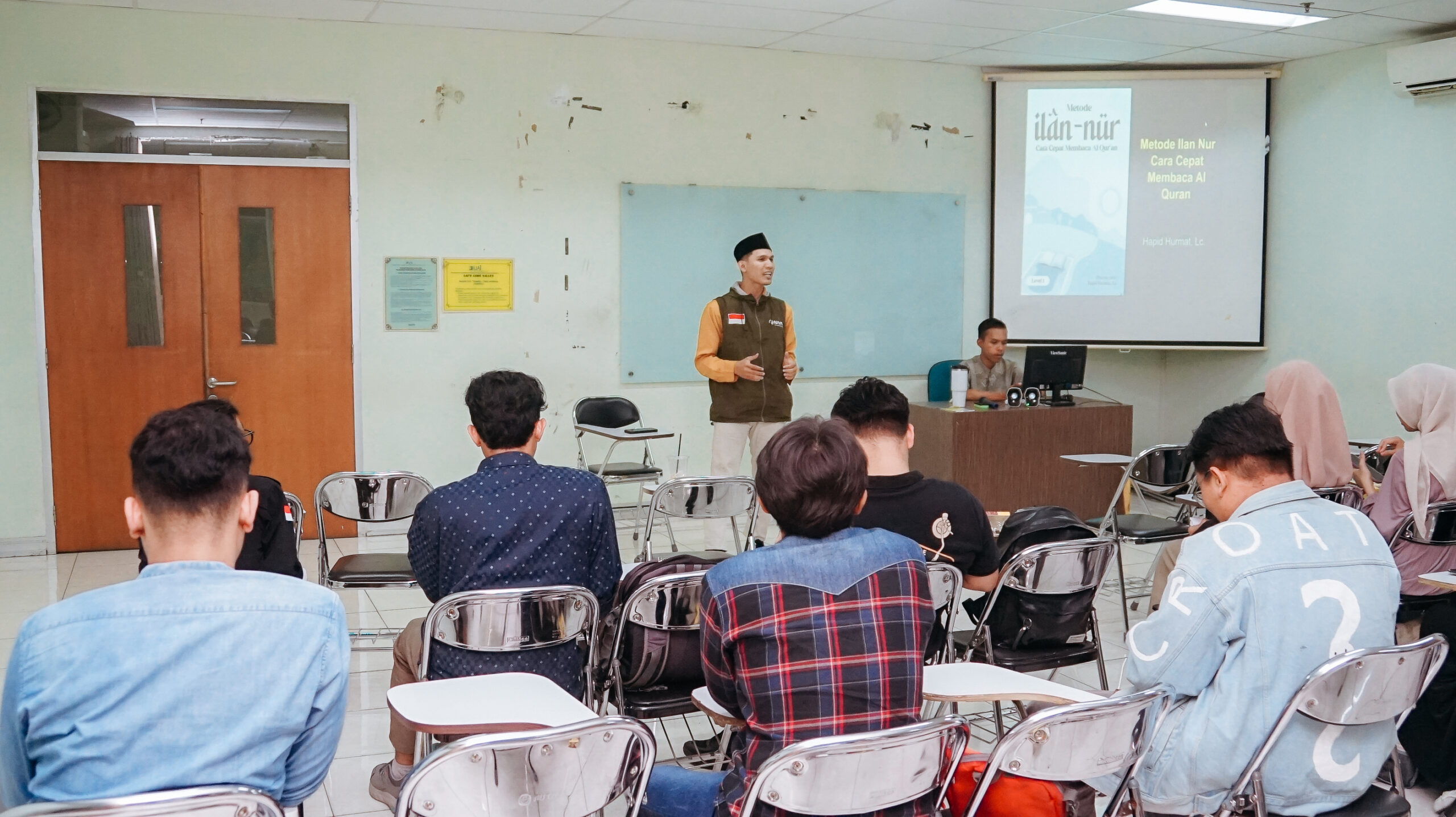 Dalam sesi terakhir, Abdur Rofi’ Hamas, M.Pd., selaku pemateri ketiga, memperkenalkan Metode Ilan-Nur dan microteaching. Menurutnya, Ilan-Nur berarti jalan menuju cahaya, karena Al-Qur’an adalah kitab cahaya (an-Nur) yang menuntun manusia menuju kebenaran. Metode Ilan-Nur terdiri dari tiga tingkatan pembelajaran, yaitu tingkat dasar, menengah, dan lanjutan. Menurutnya, metode Ilan-Nur telah disusun secara praktis dan sistematis, serta seluruh contohnya bersumber dari ayat Al-Qur’an.