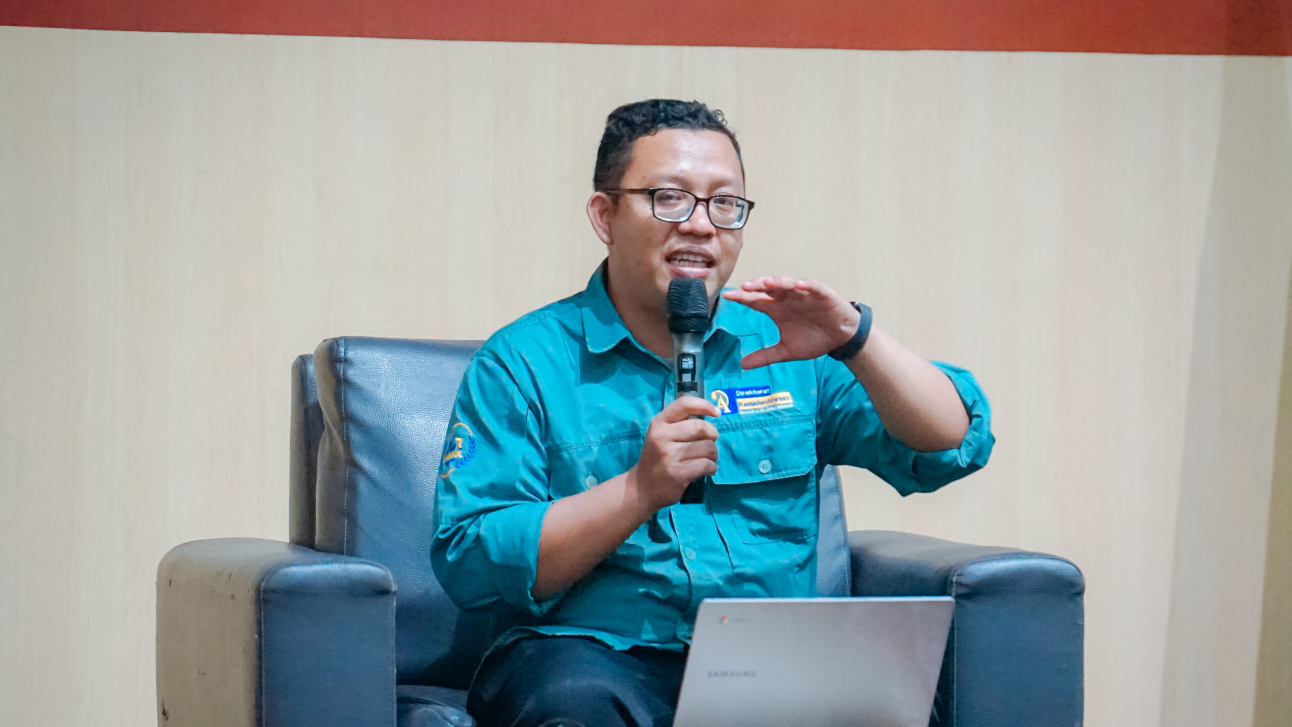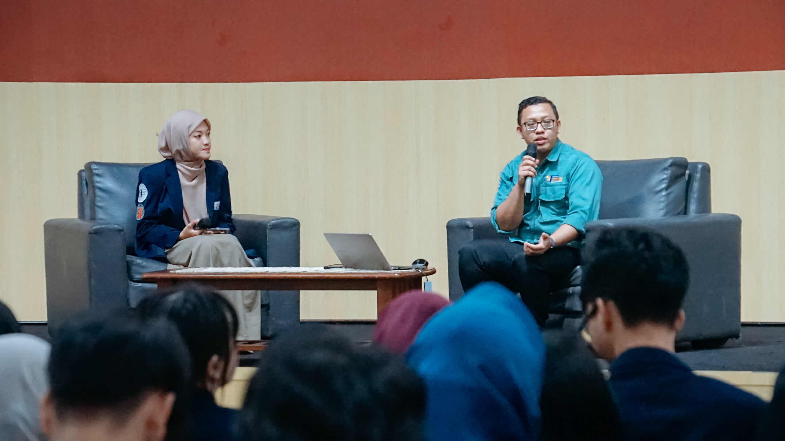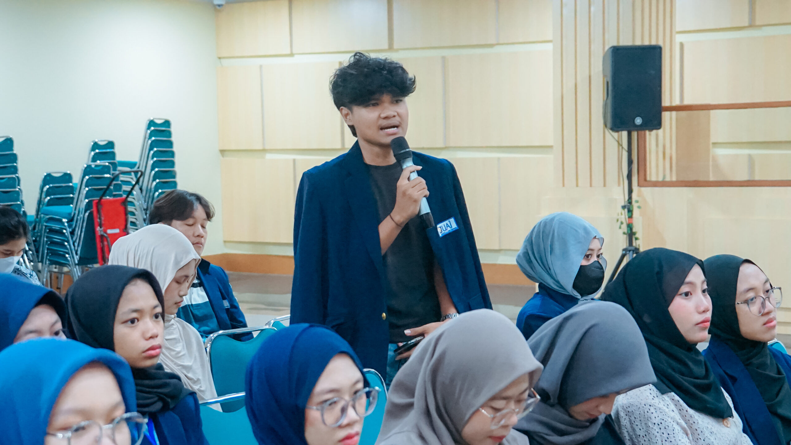 Sesi diskusi bersama mahasiswa penerima beasiswa dibagi menjadi tiga bagian. Selama acara berlangsung, Jatmiko Agus Nugroho, S.Kom., M.H. selaku pemateri, bersama Maharani Hanafasyah, mahasiswi UAI yang bertugas sebagai moderator, mengupas lebih dalam topik pembinaan mahasiswa penerima beasiswa.