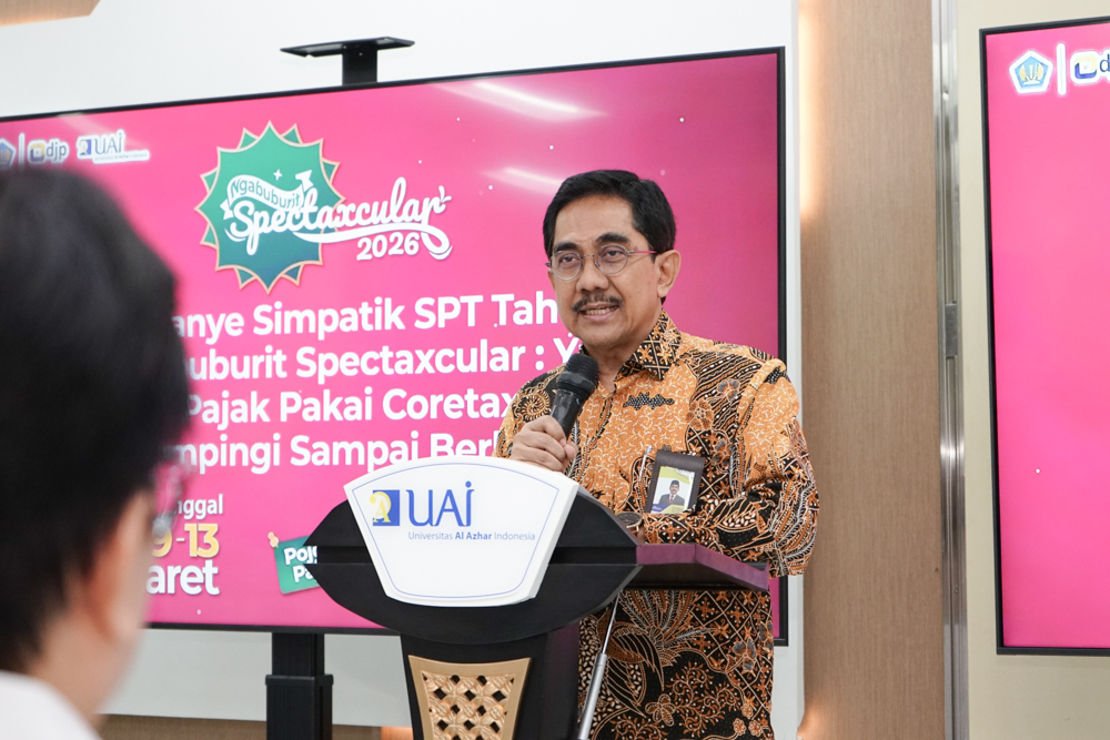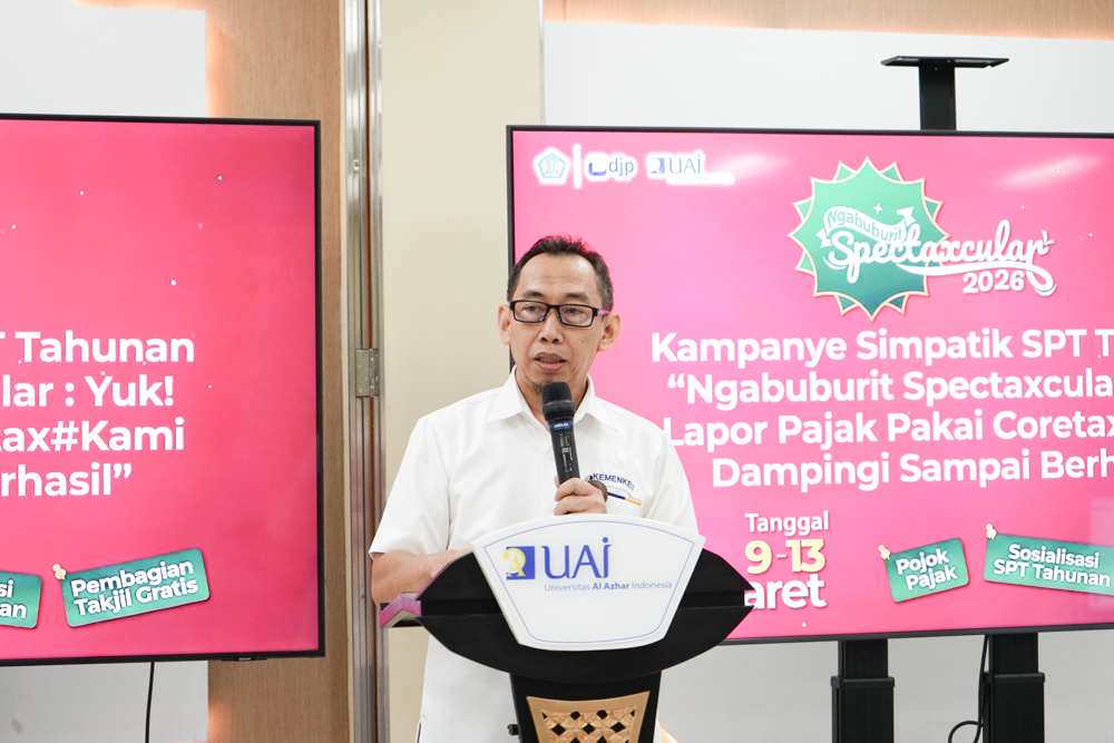 Tax Center Universitas Al-Azhar Indonesia (UAI) bekerja sama dengan Kantor Wilayah Direktorat Jenderal Pajak (Kanwil DJP) Jakarta Selatan II serta Kantor Pelayanan Pajak (KPP) di wilayah Jakarta Selatan menyelenggarakan kegiatan Ngabuburit Spectaxcular 2026. Kegiatan ini berlangsung di Ruang Kaca UAI pada 9 hingga 13 Maret 2026. Program tersebut menghadirkan ruang edukasi perpajakan yang dikemas secara santai sekaligus menjadi ajang berbagi di bulan Ramadhan.