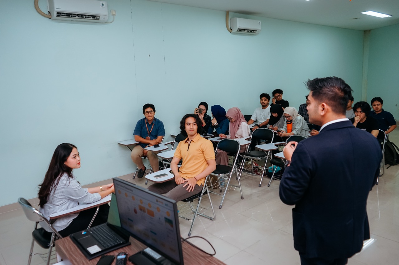 Rijal Arslan, S.E., M.M., Wakil Dekan Fakultas Ekonomi dan Bisnis (FEB) UAI sekaligus dosen Program Studi Manajemen, membuka kelas dengan menyampaikan bahwa perkuliahan kali ini merupakan hasil kolaborasi dengan BSI. Beliau menjelaskan bahwa kegiatan tersebut merupakan bagian dari persiapan Ujian Akhir Semester (UAS) melalui praktik pembukaan rekening menggunakan aplikasi BYOND by BSI.