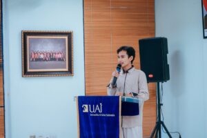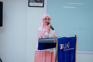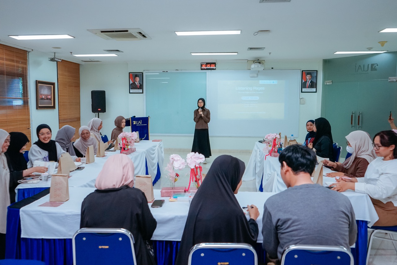 Acara dibuka dengan sambutan dari Wakil Dekan Fakultas Ilmu Pengetahuan Budaya UAI, Dr. Soraya, S.Pd., M.Hum. Dalam sambutannya, beliau menyampaikan bahwa bahasa tidak hanya berfungsi sebagai alat komunikasi, tetapi juga menjadi sarana untuk memahami diri, merefleksikan pengalaman, serta menyampaikan gagasan jadi lebih bermakna. “Melalui kegiatan journaling yang dihadirkan, bahasa menjadi medium ekspresi dan refleksi diri,” ujar Wakil Dekan.