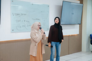 Pelatihan diisi oleh Kevin Kautsar, S.Pd., CPS., dari Belajar Ngomong sebagai pemateri. Ia memulai pembahasan dengan menekankan bahwa dalam kegiatan presentasi, penyampaian materi sebaiknya tidak langsung berfokus pada produk atau institusi. Presentasi yang terlalu terkesan “menjual”, menurutnya, justru beresiko kehilangan perhatian audiens. Oleh karena itu, pemateri mendorong peserta untuk terlebih dahulu membangun konteks dengan membahas situasi yang relevan dengan audiens agar tercipta kedekatan emosional sebelum pesan utama disampaikan. Dalam sesi ini, Kevin juga membagikan teknik promosi yang lebih komunikatif dan mengena, yang kemudian dipraktekkan langsung oleh para mahasiswa Ambassador UAI.