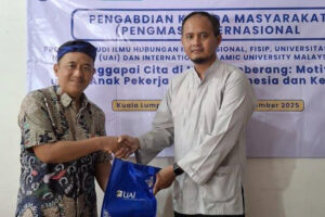 Kuala Lumpur, 26-28 September 2025, Program Studi Ilmu Hubungan Internasional, Fakultas Ilmu Sosial dan Ilmu Politik, Universitas Al-Azhar Indonesia (UAI) berkolaborasi dengan International Islamic University Malaysia (IIUM) telah melaksanakan kegiatan Pengabdian kepada Masyarakat Internasional di Sanggar Bimbingan (SB) Klang Gate, Kuala Lumpur, Malaysia dengan mengusung temaMenggapai Cita di Negeri Seberang: MotivAct untuk Anak Pekerja Migran Indonesia (PMI) dan Keluarga di Malaysia” yang bekerja sama dengan PT. Jamkrindo.