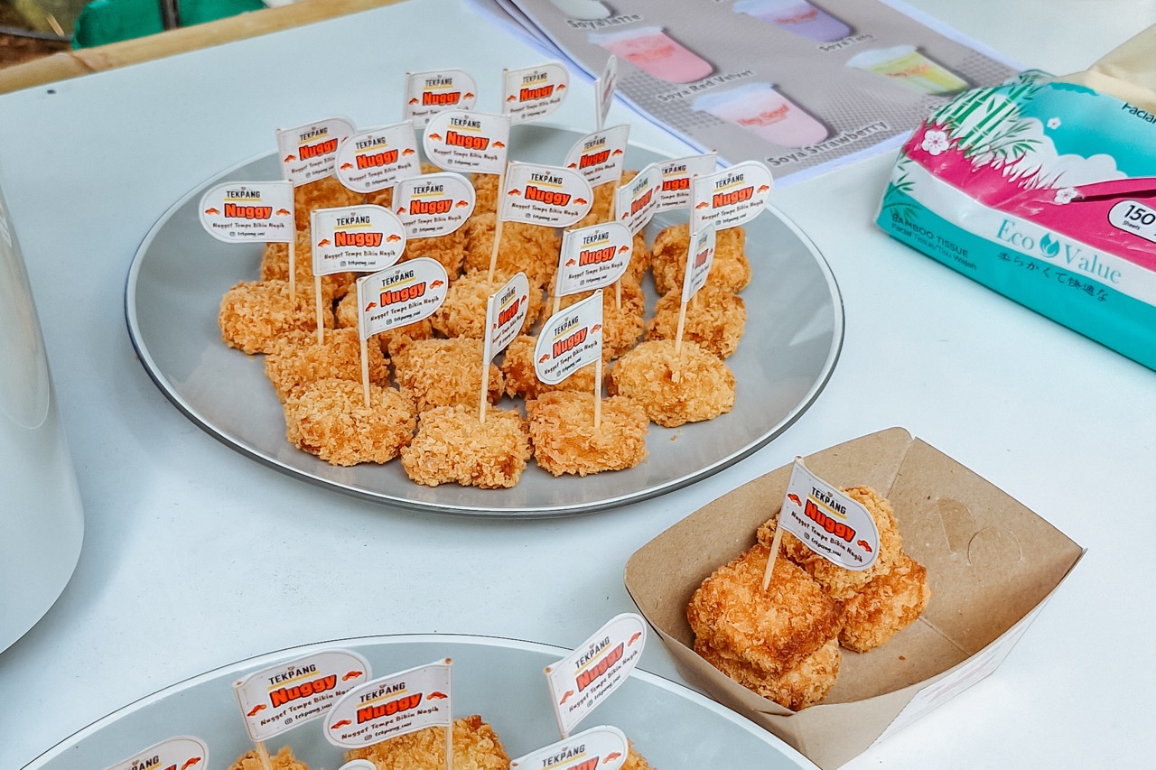 Antusiasme pengunjung terlihat dari berbagai respons positif terhadap produk yang ditampilkan. Salah satu pengunjung menyampaikan apresiasinya dengan mengatakan, “Enak banget! Tekstur dan rasanya mirip nugget ayam. Kalau tidak diberi tahu, tidak menyangka ini nugget tempe.” Selain itu, banyak pengunjung juga menunjukkan ketertarikan dan rasa penasaran terhadap proses pembuatan nugget tempe yang diperkenalkan oleh tim Prodi Tekpang UAI.