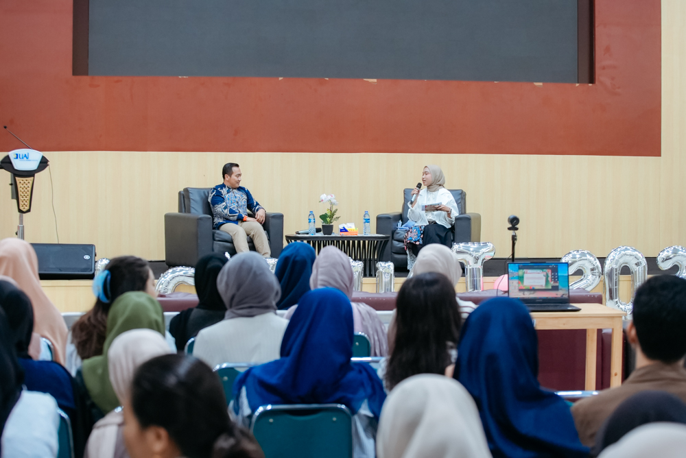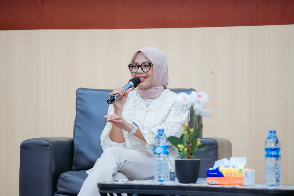 Diskusi ilmiah ini dipandu oleh Daiva Alifia, mahasiswa Universitas Al-Azhar Indonesia. Keterlibatan mahasiswa sebagai moderator mencerminkan peran aktif generasi muda UAI dalam kepemimpinan dan pengembangan keilmuan gizi di tingkat nasional.