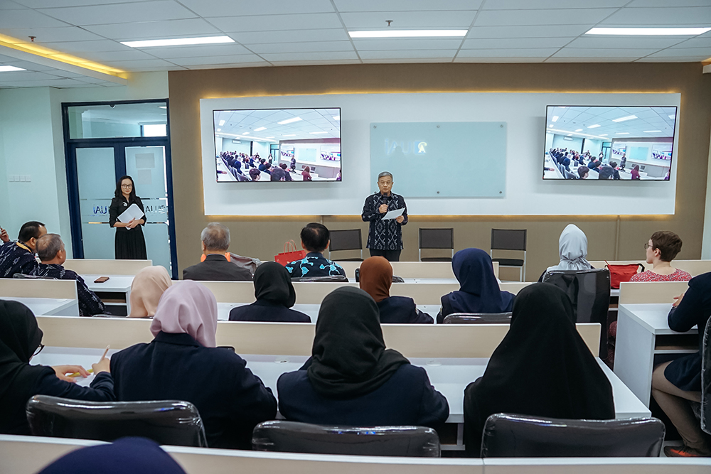 Rektor UAI, Prof. Dr. Ir. Asep Saefuddin, M.Sc., membuka acara dengan memberikan sambutan tentang pentingnya pembentukan karakter pada pembelajar. “Karakter dalam diri manusia itu sangat penting. Orang pintar tetapi tidak memiliki karakter yang baik itu tidak ada gunanya,” tegas beliau. Rektor juga menegaskan bahwa internasionalisasi perguruan tinggi yang diwujudkan melalui kerja sama dengan universitas-universitas di berbagai belahan dunia, merupakan langkah strategis untuk mencapai kampus yang unggul.