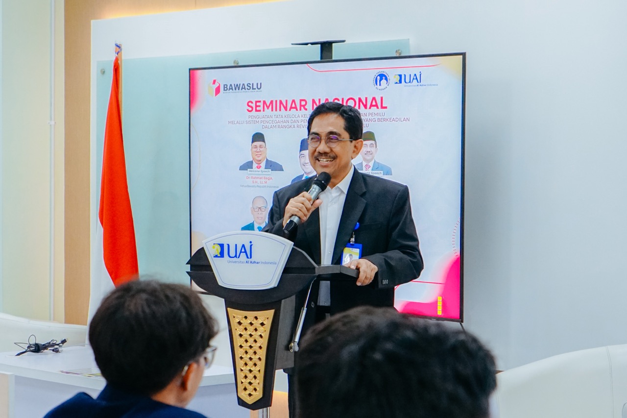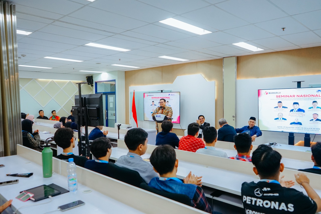 Fakultas Hukum Universitas Al-Azhar Indonesia (UAI) menyelenggarakan seminar nasional bersama Badan Pengawas Pemilihan Umum (Bawaslu) bertema “Penguatan Tata Kelola Kelembagaan melalui Sistem Pencegahan dan Penegakan Hukum Pemilu yang Berkeadilan dalam Rangka Revisi UU Pemilu.” Acara ini dilaksanakan dalam rangka memberikan pemahaman komprehensif mengenai urgensi revisi UU Pemilu serta memperkuat tata kelola kelembagaan pemilu yang berintegritas. Kegiatan berlangsung di Ruang 317 AB pada Jumat, 21 November 2025 dan dihadiri oleh para mahasiswa serta sivitas akademika FH UAI.