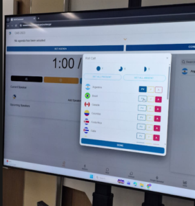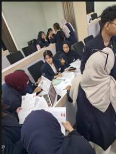 Selama simulasi berlangsung, suasana forum berjalan aktif dan dinamis. Mahasiswa menyampaikan pernyataan resmi, melakukan debat, serta merumuskan sikap negara masing-masing terhadap isu yang dibahas. Praktikum ini tidak hanya mendorong kemampuan berbicara dalam Bahasa Inggris, tetapi juga mengasah keterampilan public speaking, berpikir kritis, kerja sama tim, dan strategi negosiasi dalam konteks hubungan internasional.