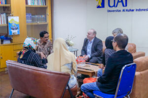 Menjelang kepulangan ke negara asal, akademisi University of Edinburgh melaksanakan agenda silaturahmi dan pamitan dengan Universitas Al-Azhar Indonesia (UAI) yang berlangsung di Ruang Rektor UAI pada Kamis, 29 Januari 2025. Agenda ini menjadi penutup rangkaian kegiatan “Academic Success for Research with Visual Impairment” selama berada di Indonesia sejak Sabtu, 24 Januari 2025 lalu.