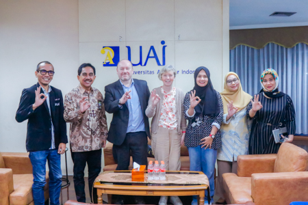 Dalam kesempatan tersebut, dua akademisi University of Edinburgh, Prof. John Ravenscroft dan Elizabeth McCann, hadir didampingi oleh Dekan Fakultas Ilmu Sosial dan Ilmu Politik (FISIP) UAI, Dr. Damayanti Wardyaningrum, S.E., M.Si., Indonesian Lead Project, Cut Meutia Karolina, S.I.Kom., M.I.Kom., Indonesian Deputy, Gusmia Arianti, S.E., M.Si., Tim ULD UAI, serta Edoardo Irfan, S.I.P., M.Si.
