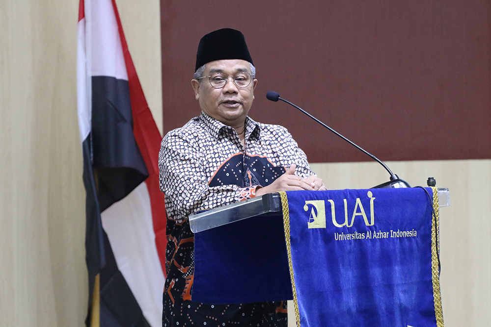 Rektor UAI, Prof. Dr. Ir. Asep Saefuddin, M.Sc., memberikan sambutan serta ucapan terima kasih kepada perwakilan Universitas Al-Azhar Kairo yang telah bersedia untuk hadir di UAI. Demi menjamin mahasiswa dapat menguasai Bahasa Arab, beliau menginstruksikan kepada Wakil Rektor I Bidang Akademik untuk terapkan pembelajaran Bahasa Arab sebagai mata kuliah wajib di seluruh program studi yang ada. Tidak hanya itu, Rektor juga mengumumkan bahwa UAI akan membuka program direct track bagi siswa SMA Al-Azhar yang akan berkuliah di UAI berupa konversi beberapa mata pelajaran menjadi SKS di UAI, terutama mata pelajaran agama.