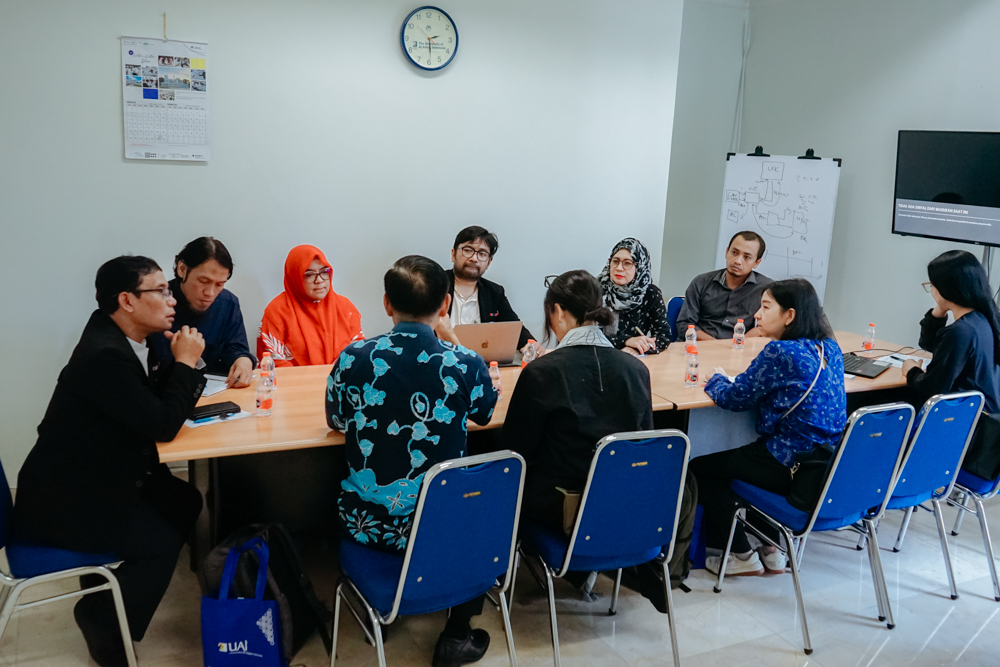 Kegiatan kemudian dilanjutkan dengan sesi Focus Group Discussion (FGD) yang melibatkan Direktorat Kemitraan dan Kantor Urusan Internasional, Program Studi Bahasa dan Kebudayaan Inggris, serta Clarity English. FGD ini dihadiri oleh Dr. Soraya, S.Pd., M.Hum., Wakil Dekan Fakultas Ilmu Pengetahuan Budaya, Thafhan Muwaffaq, S.S., M.A., Ketua Program Studi Bahasa dan Kebudayaan Inggris, serta para dosen Bahasa Inggris Universitas Al-Azhar Indonesia. Diskusi berlangsung aktif dan dimoderatori oleh Muchammad Nasucha, S.S., M.Si., Kepala Bagian Kerja Urusan Internasional, dengan fokus pada peluang integrasi platform pembelajaran digital ke dalam kurikulum serta penguatan pembelajaran bahasa Inggris di era kecerdasan buatan.