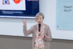 Kegiatan ini menghadirkan dua pemateri dari University of Edinburgh, yakni Prof. John Ravenscroft dan Elizabeth McCann. Para pemateri membahas pemahaman dasar mengenai disabilitas netra, ragam kondisi visual impairment, serta implikasinya terhadap aktivitas akademik, khususnya dalam proses membaca, menulis, dan mengakses sumber ilmiah.