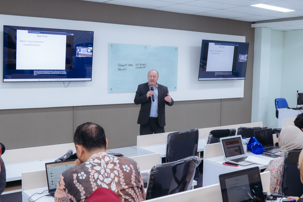 Pelatihan ini merupakan bagian dari kolaborasi UAI dan University of Edinburgh yang didukung oleh British Council melalui skema Disability Inclusion Partnership, dengan fokus pada penguatan praktik inklusivitas dalam pengelolaan jurnal ilmiah, khususnya aksesibilitas bagi penyandang disabilitas netra.