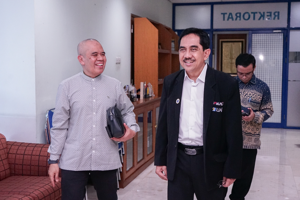 Kunjungan ini disambut oleh jajaran pimpinan UAI, yakni Rektor UAI, Prof. Dr. Widodo Muktiyo, Kepala Sekretariat dan Humas, Dini Priatini, S.K.M., M.M., Direktur Pengembangan dan Teknologi Informasi, Ir. Hidayat Yorianta Sasaerila, M.Sc., Ph.D., serta Direktur Kemitraan dan Kantor Urusan Internasional (KUI), Dr. Mohamad Ghozali Moenawar, Lc., M.M.