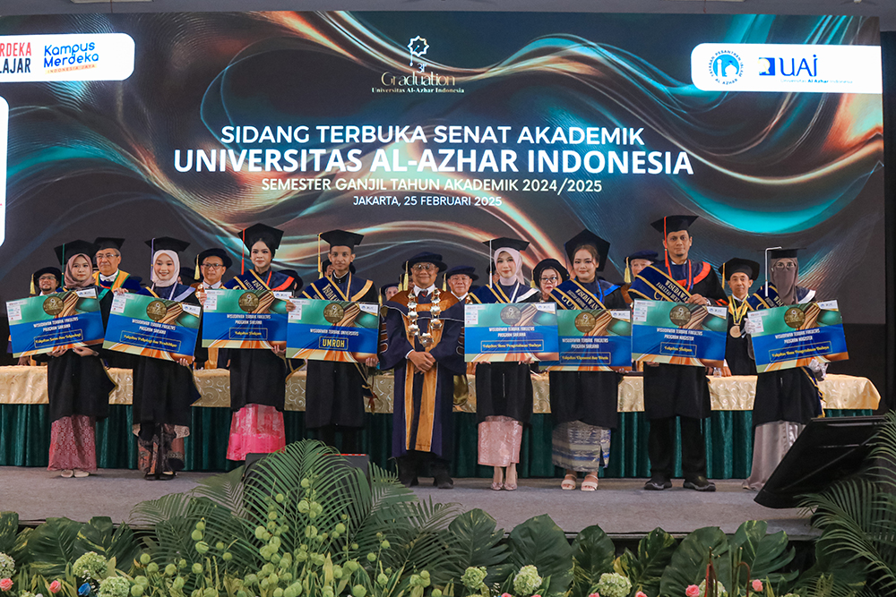 Universitas Al-Azhar Indonesia (UAI) sukses menyelenggarakan Wisuda ke-31, yang berlangsung di Gedung Sasana Kriya, Taman Mini Indonesia Indah, Jakarta Timur, pada Selasa, 25 Februari 2025. Acara wisuda ini diikuti oleh 623 wisudawan/wisudawati, yang secara resmi dilantik oleh Rektor UAI, Prof. Dr. Ir. Asep Saefuddin, M.Sc., melalui Sidang Terbuka Senat Akademik Universitas Al-Azhar Indonesia.