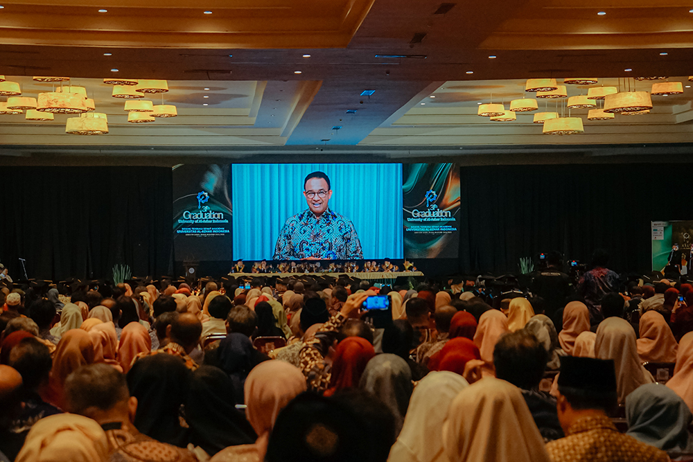 Dalam pidatonya, Rektor mengapresiasi kerja keras, tekad, dan dedikasi wisudawan/wisudawati dalam menempuh perjalanan akademik yang penuh tantangan. “Ini adalah bukti komitmen anda, para wisudawan, terhadap pendidikan dan pembelajaran sepanjang hayat,” ucap Rektor. Tidak hanya itu, pada sambutannya, beliau juga menegaskan komitmen UAI untuk terus meningkatkan mutu input-process-output serta outcome pendidikan melalui tracer study dan user survey.