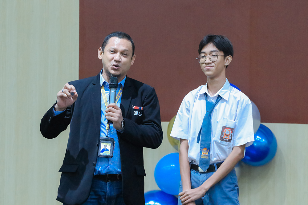 Dr. Faisal Hendra, Lc., M.A., selaku Wakil Rektor III Bidang Kemahasiswaan dan Alumni, menyampaikan laporan peluncuran penerimaan mahasiswa baru tahun ajaran 2025/2026. Beliau melaporkan bahwa kegiatan ini dihadiri oleh para siswa dari 11 SMA/sederajat di Jakarta dan sekitarnya. Selain itu, beliau juga menyampaikan bahwa pada tahun 2024, UAI menerima sekitar 1.300 mahasiswa baru yang tersebar di 11 program studi sarjana (S1), 5 program studi magister (S2), dan 1 program studi doktor (S3). Wakil Rektor III berharap agar para siswa yang hadir menjadikan UAI sebagai pilihan utama dalam menentukan kampus impian mereka.